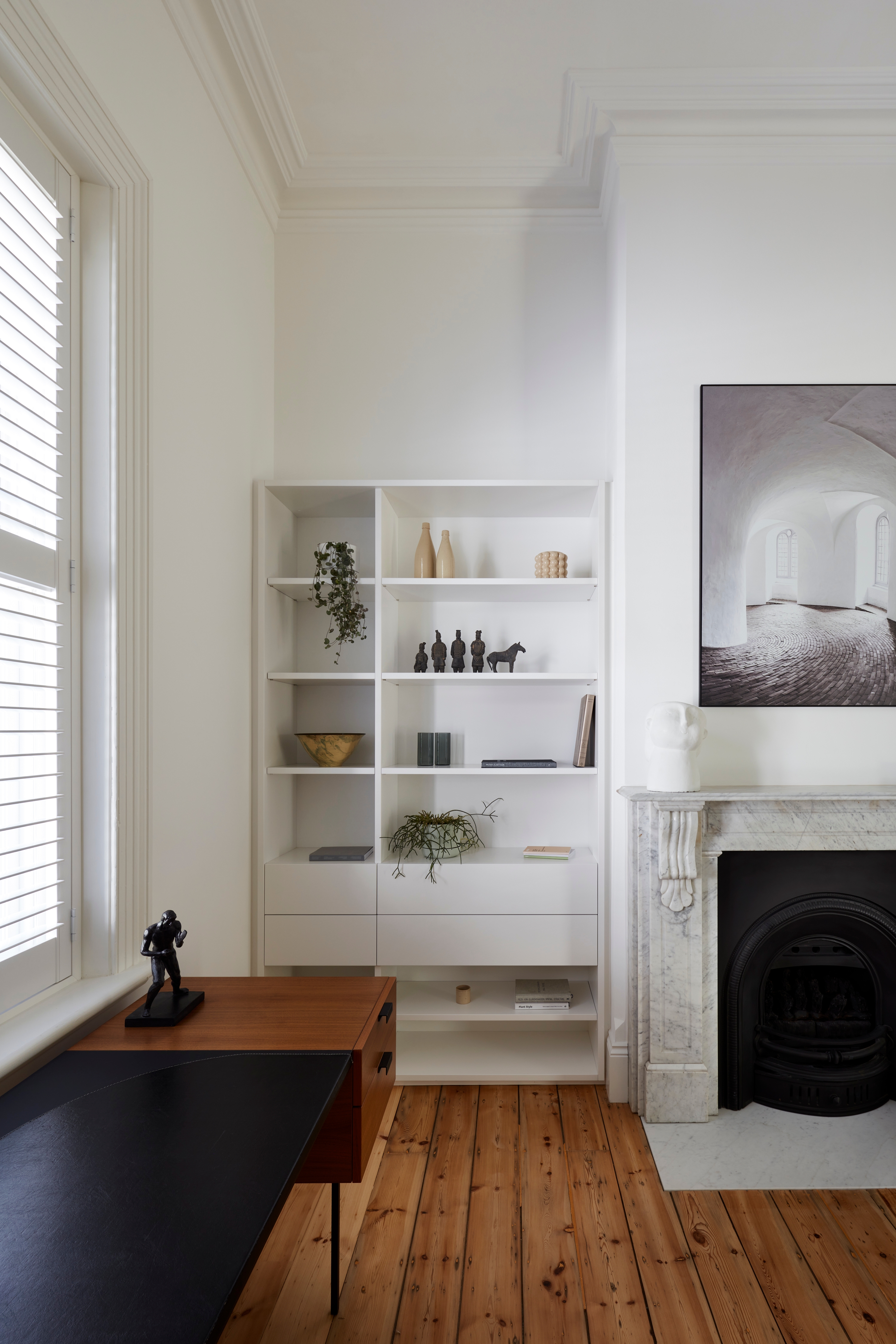 The restored villa opens to stippled white walls, natural light, and limestone. Transparency and connectivity, as well as the play with light and volume, are recurring themes in this home that is hard to leave. Four courtyards draw on ancient principals to capture the light and the passing of time. There is always a place to suit the occupants’ needs. These courtyards enable the spaces to connect and flow, from old to new, from indoor to outdoor and room to room.