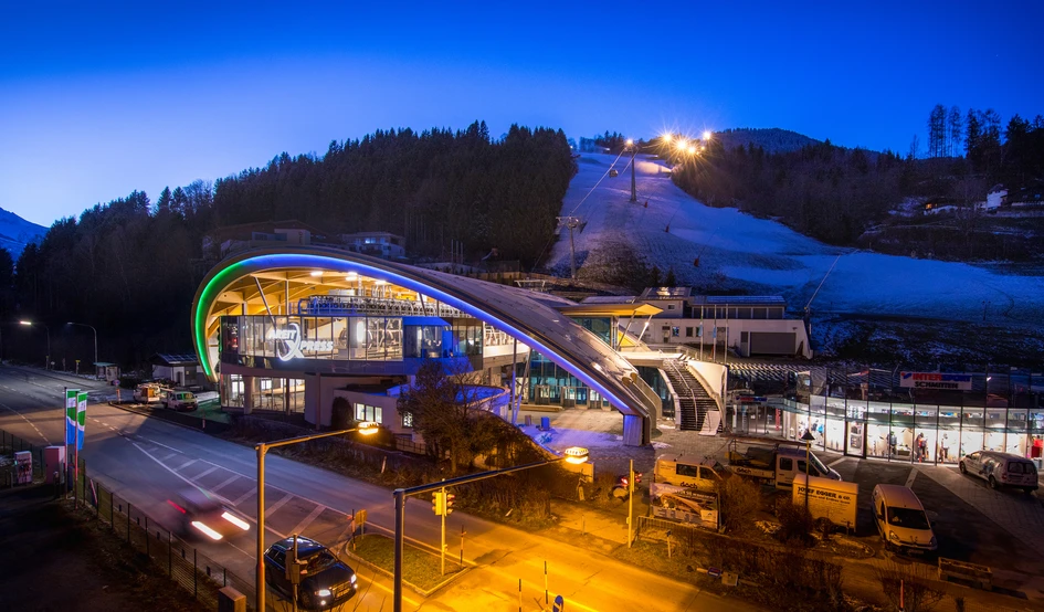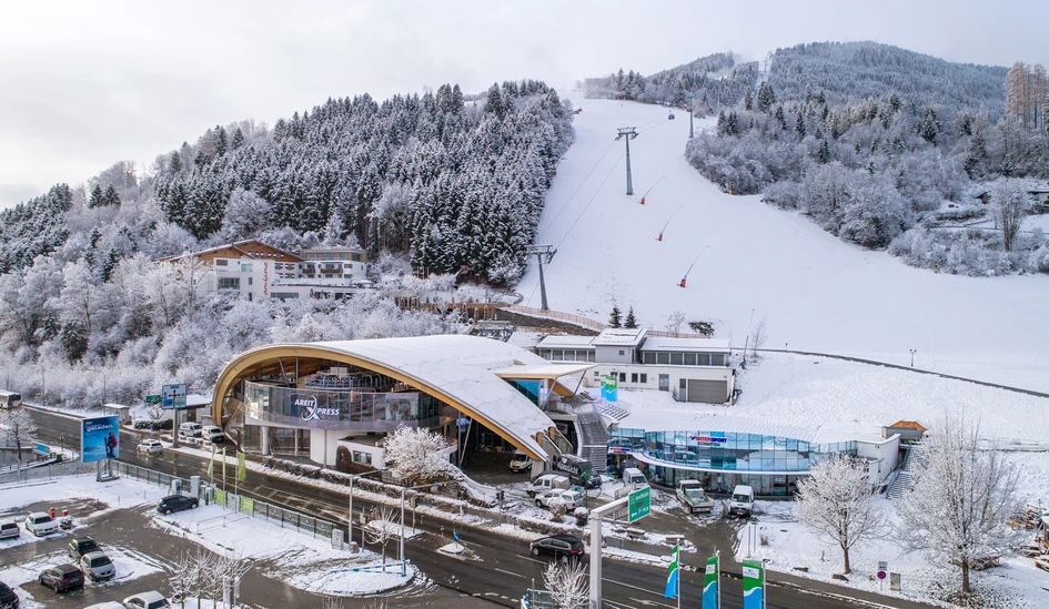 Die Talstation areitXpress wurde im Jahr 2017 neu gebaut und ist inzwsichen eine der wichtigsten und modernsten Gondelbahnen in der Region. Die Talstation besteht aus einer innovativen Holz-Membrankonstruktion, die durch ihre warme und natürliche Bauweise bisher einzigartig ist.