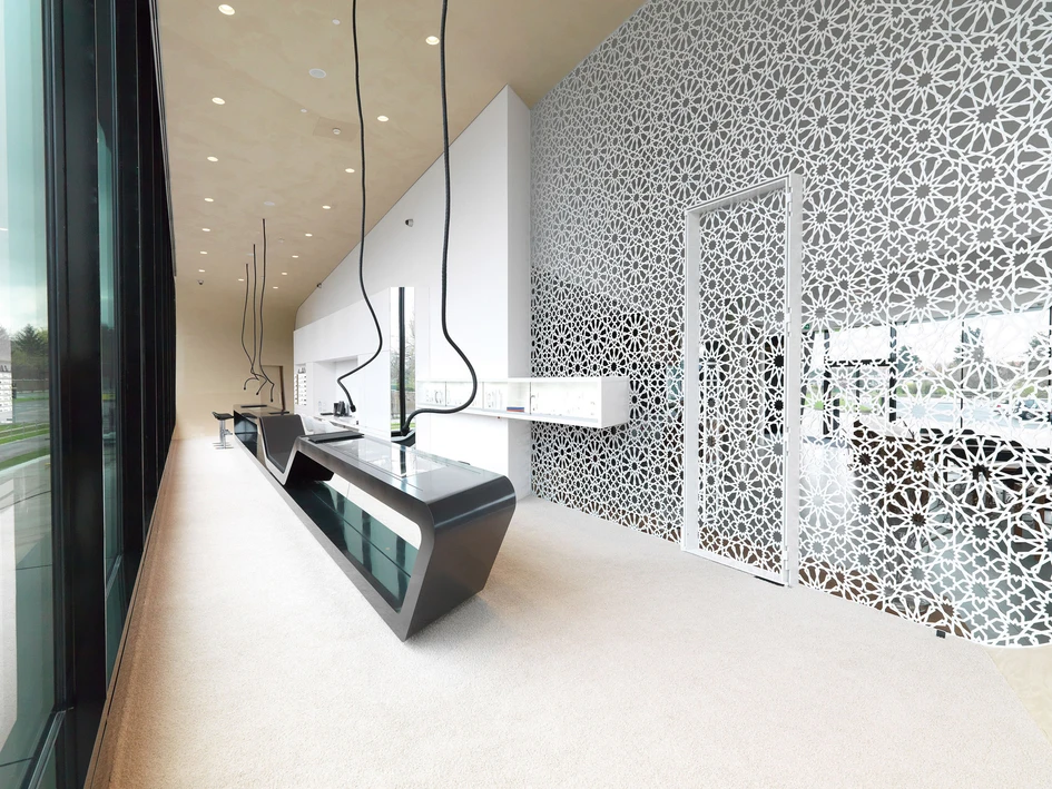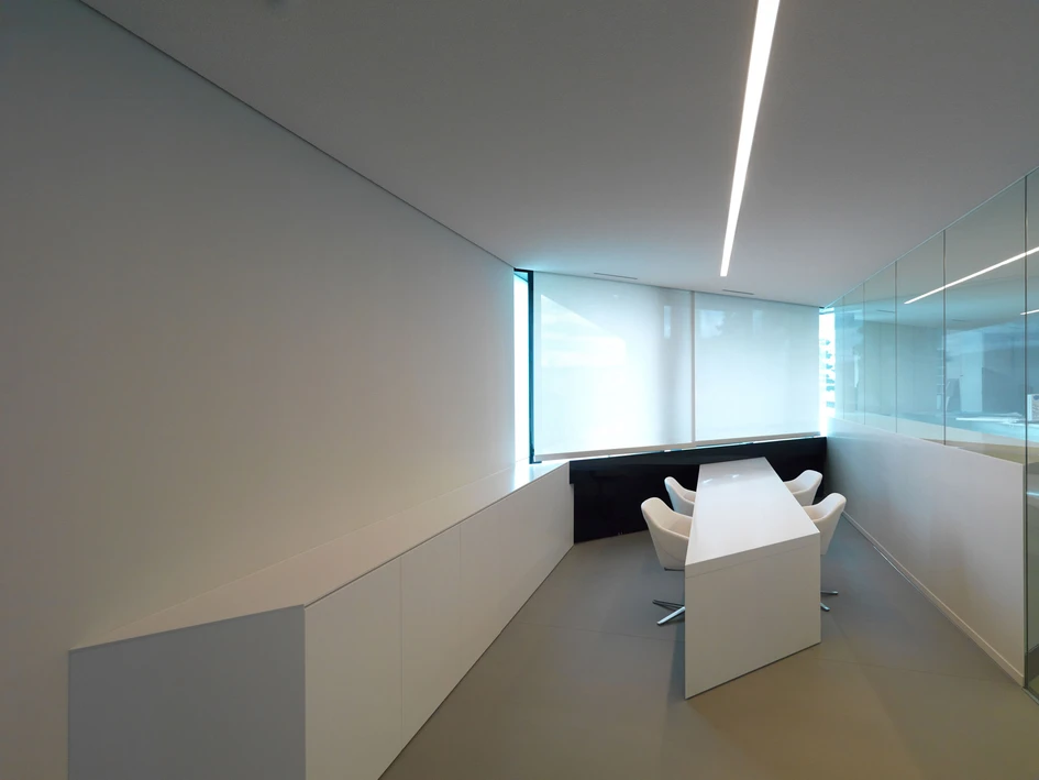 Hohe räumliche Qualitäten werden nicht nur in den Büro- und Repräsentationsräumen geboten, auch die Erschließungszonen und Nebenräume wurden mit der gleichen Hingabe gestaltet. Ganz der Lebensphilosophie des Bauherrn Michael Pachleitner entsprechend, der meint: „Wenn man schon 80 Prozent seines Lebens mit Arbeit verbringt, sollte man diese Zeit in einer ansprechenden Umgebung verbringen.“ – „Meine Mitarbeiter konnten den Umzug ins MP09 gar nicht erwarten“, verdeutlicht Pachleitner den Spirit seines maßgeschneiderten Headquarters. Wobei sein eigenes Büro mit Terrasse und Lounge in der spektakulären Auskragung des „schwarzen Panthers“ auch ganze 100 Prozent Lebenszeit mit Genuss ermöglichen würde.
