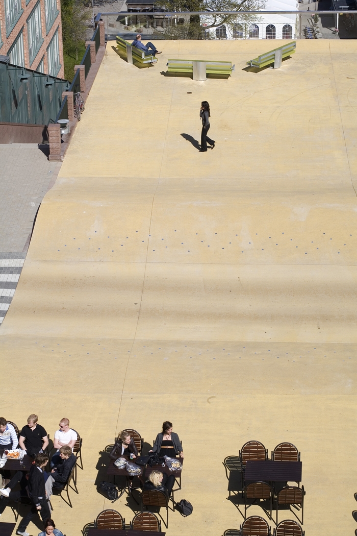 Vesa also felt that the form, the day time exposure has to have the movement of flow through the space. This is why the surface of this place started to wave like a beach sand, it started to see the forms of dynes. These dynes took the role of bollards, telling to cars and pedestrians where to go. But this time the message was different. It is the people who own the place. Cars are visitors and they have to be aware. Cars got a path through the place, driving in a valley. The slopes of the valley will glitter with starry lights. The flow of the space got another exposure as well. Light walls started to flow through the space, guiding the flow of emptiness. This place must not have any light poles. All the light has to be part of the place.
