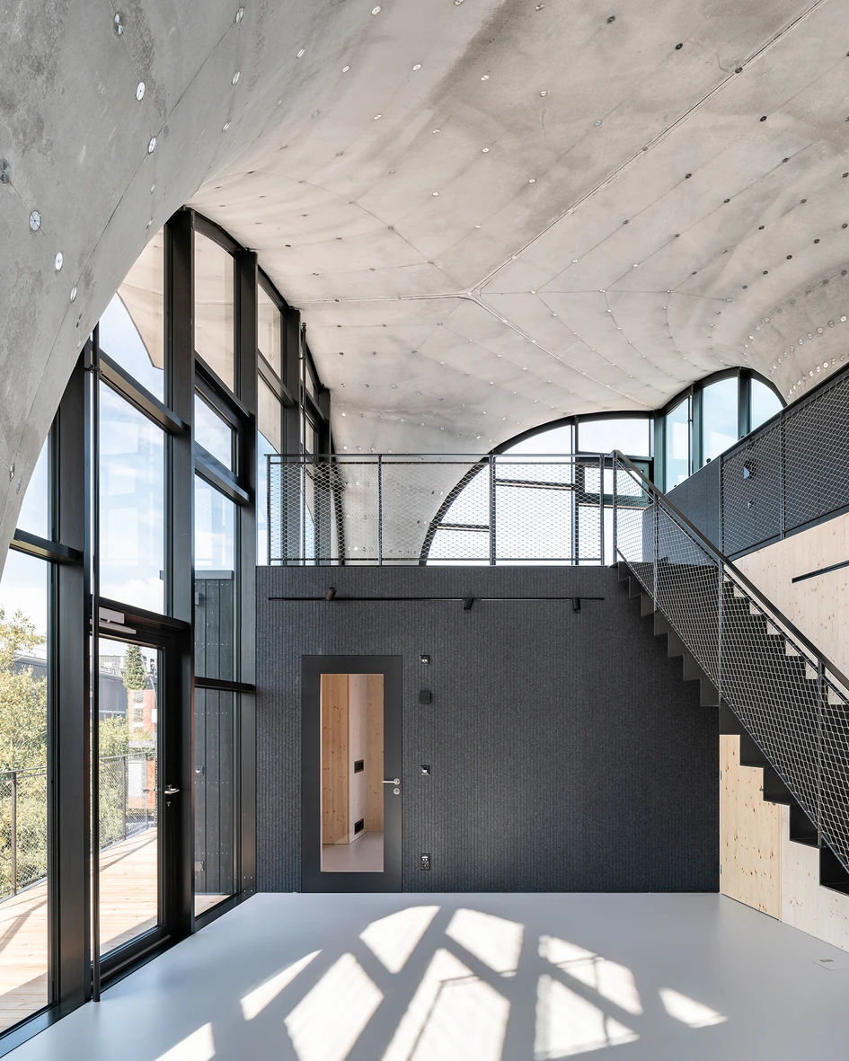 Unser zirkuläres ARCHISONIC® Material ist Teil des zukunftsorientierten Innenausbaus. Das Dach von «HiLo» bildet ein doppelt gekrümmtes Betontragwerk, das aus zwei dünnen Betonschichten von nur fünf und drei Zentimetern Dicke besteht. Eine adaptive Solarfassade und ein Leichtbau-Gewölbedeckensystem gehören zu den weiteren Besonderheiten des Bauprojekts.