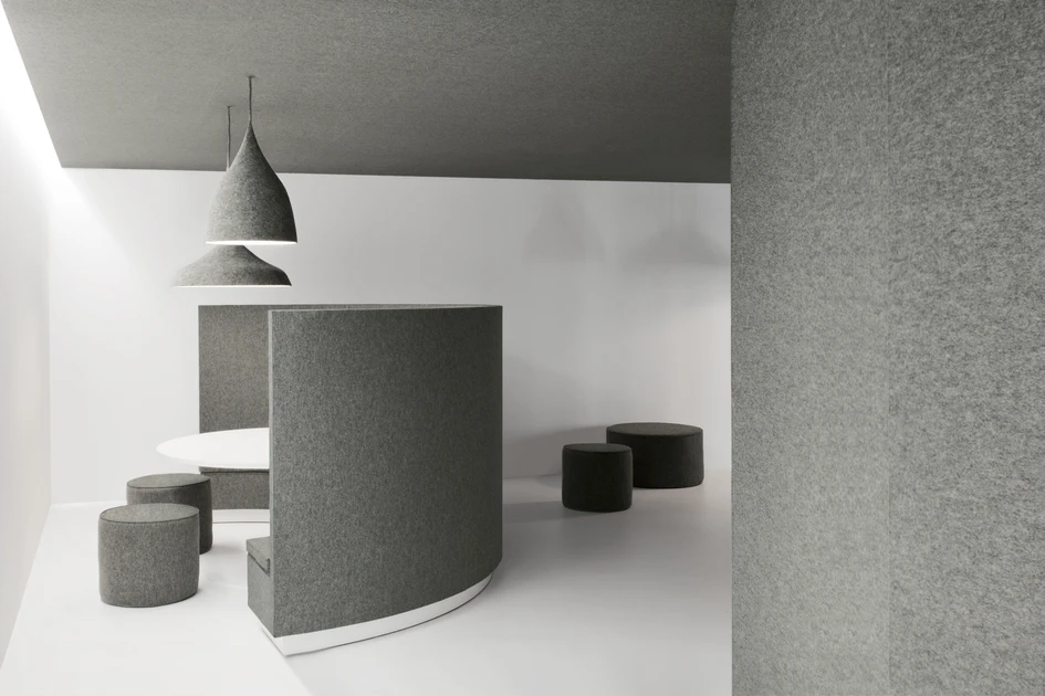 This led us to the use of fabrics. It is playful, and can make a powerful image on a conceptual lev-el, it is perfect for absorbing sound and therefore it creates privacy in open spaces. And we could use it to cover scars of demolition in an effective way. There is probably no other material which can be used on floors, ceiling, walls and to create pieces of furniture and lampshades then felt. It’s also durable, acoustic, fireproof and environment friendly. Which doesn’t mean it was easy to make all of these items in one material!