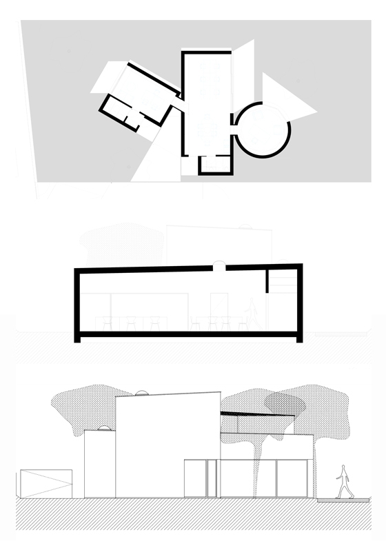 The building is the result of the juxtaposition of a series of pure, littletamed volumes, linked by necessity, but assuming its own identity.