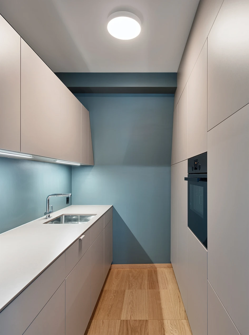 «Wir wählten das Parkett aus, da es iessende Übergänge zwischen den Mustern ermöglicht. So war die Umsetzung unseres Gestaltungskonzepts erst möglich und das Parkett kommt vollends zur Geltung. Je nach Lichteinfall und Verlegung wird die Unterteilung der Bereiche dank der verschiedenen Muster verstärkt. Gleichzeitig hat uns die Schlichtheit des Parketts überzeugt», resümiert Mia Kepenek.