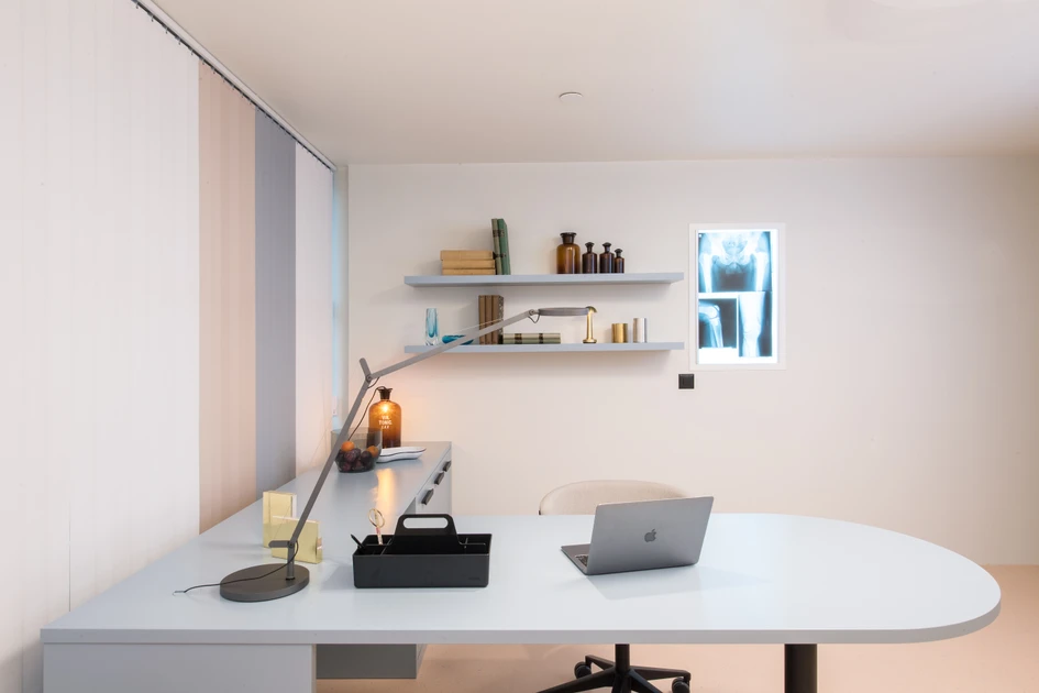 The project is characterized by the translation of the client‘s design wishes in harmony with the ergonomic aspects of an orthopedic practice as well as professional medical practice planning. The planning of the medical practice included a new office, staff areas,waiting room, practice pharmacy, and X-ray room as well as various consulting rooms and therapy rooms.