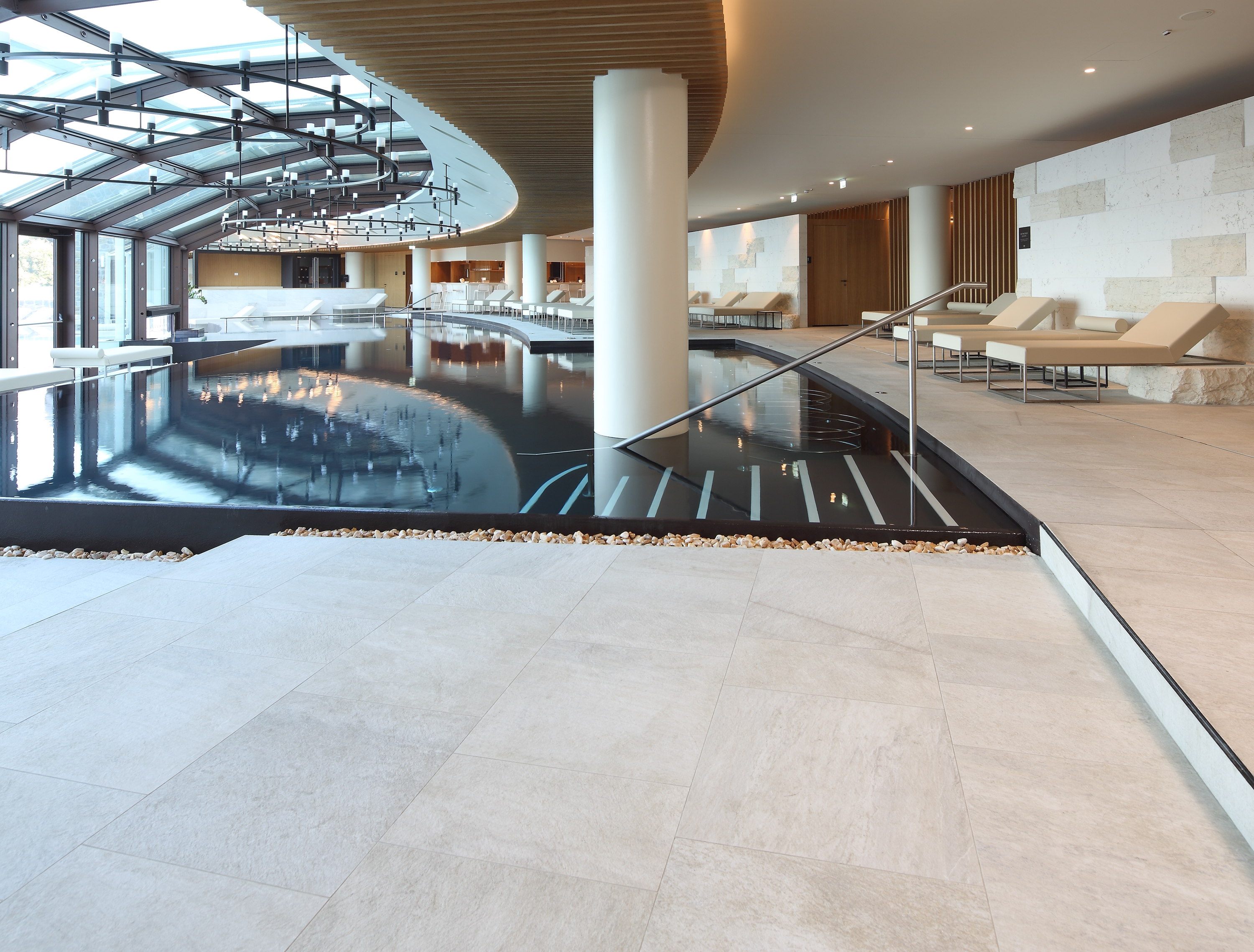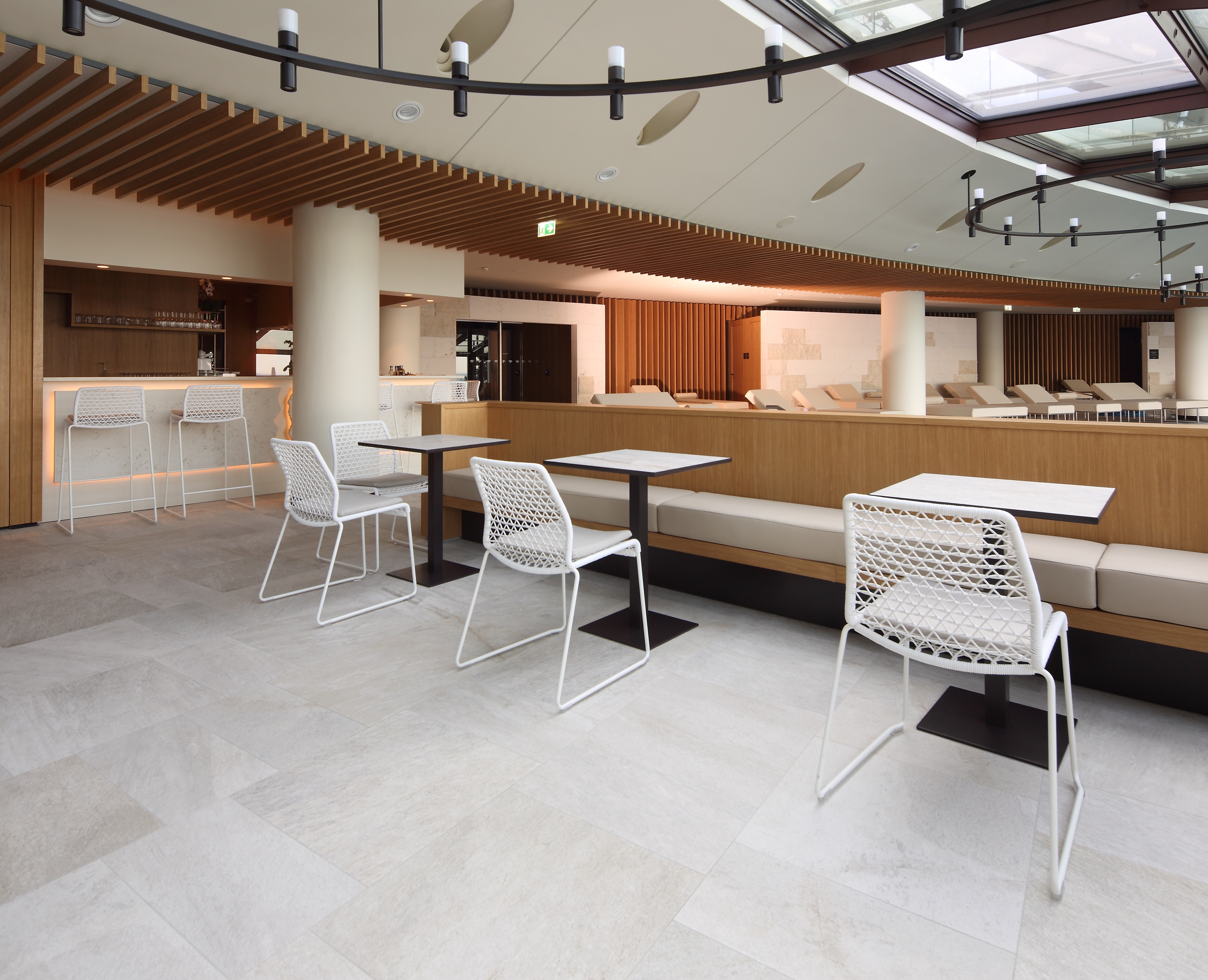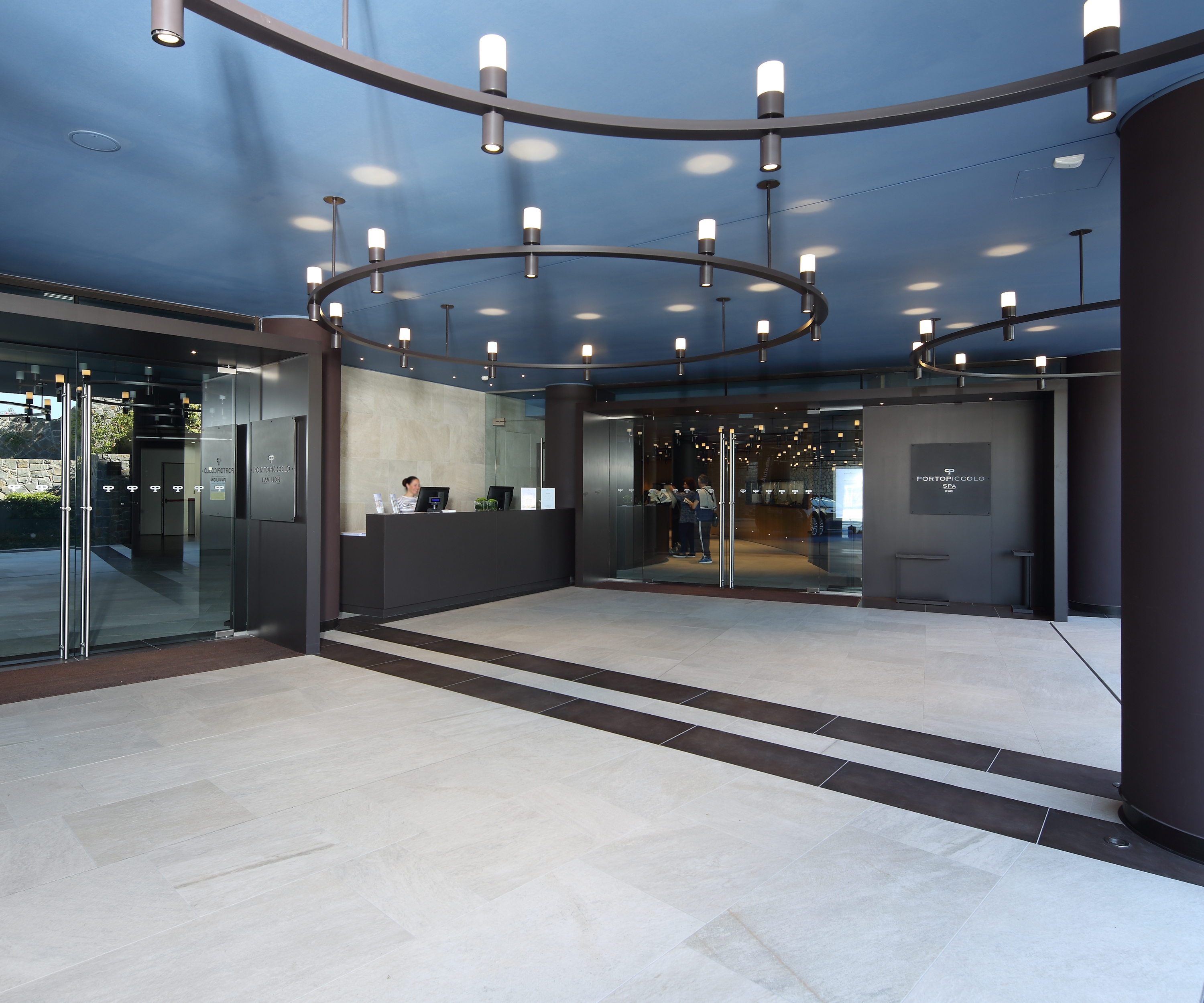 The focus on wellness permeates the whole structure, starting from a more collective and choral dimension, on the ground floor, and closing increasingly to intimacy and privacy as you ascend to the floors above. The entrance features an imposing covered porch, which welcomes customers and leads them inside. The building is fully glazed, providing perfect inter-connection between interior and exterior. The design had to pursue the efficiency and reliability of the solutions chosen, with particular attention to rationalising traditional energy sources and their ease of management and maintenance. It was therefore decided, wherever possible, to equip the complex with solutions which pay particular attention to reducing energy consumption by using renewable sources.