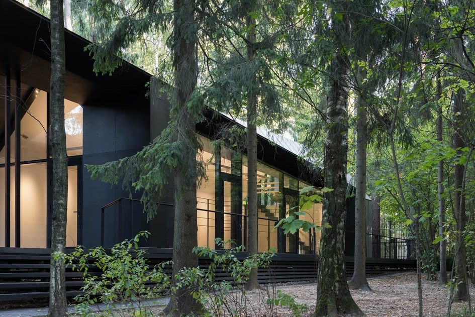 Gallery building was made of the modern materials and organically integrated into the environment. To create a functional and competent interior lighting, was used a combination of natural light (thanks to wide windows) and thoughtful lighting solutions.