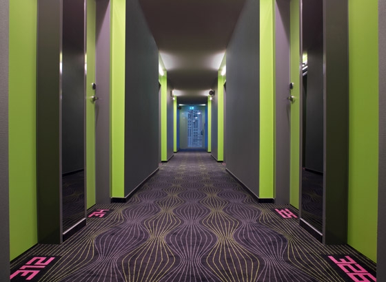 The hotel was engineered for maximum use of energy. Germany has high standards for material resources, using recycled content such as the carpets and tiles wherever possible.
