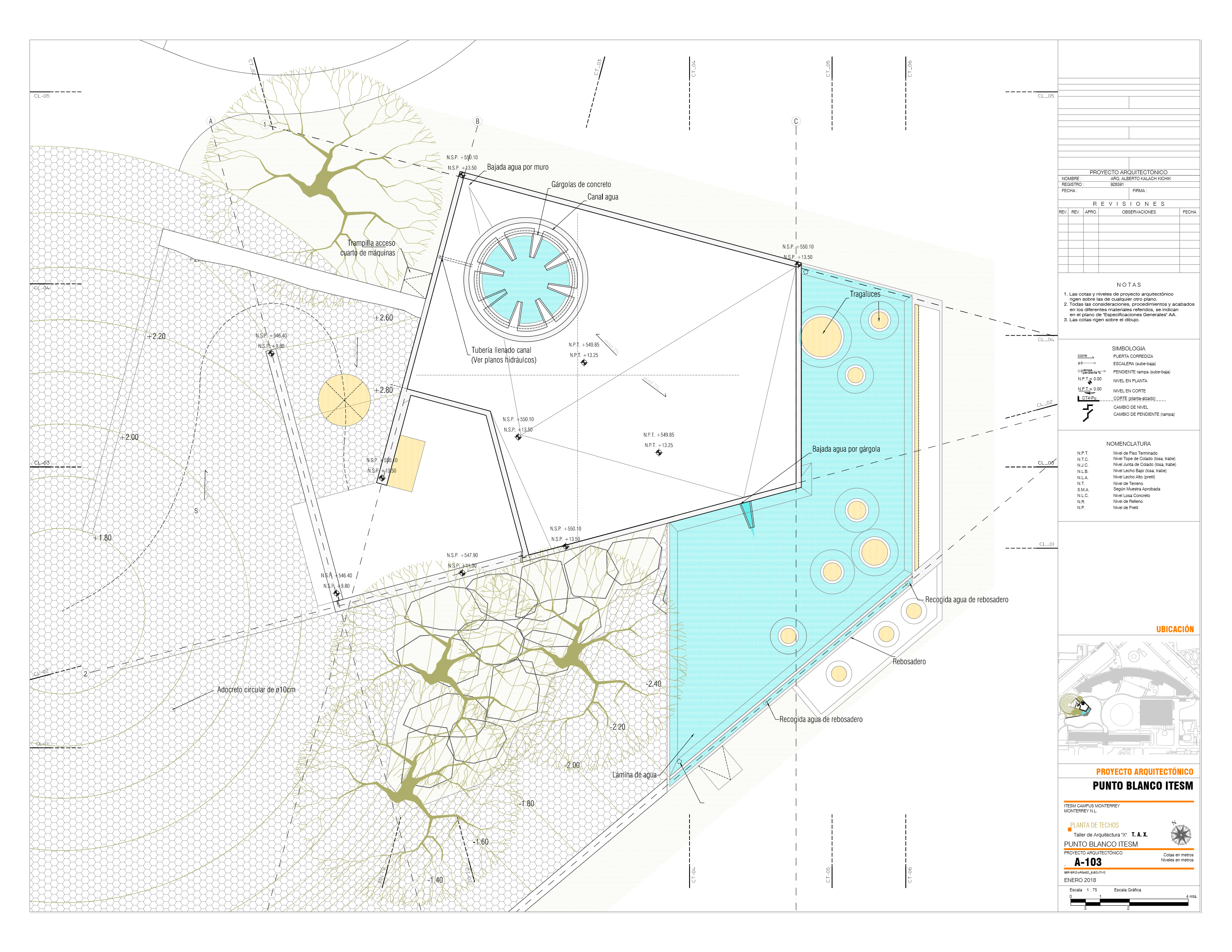 The project is located on one of the edges of the Campus, which under the TEC District Master Plan has taken charge of both the necessary infrastructure for students and their development, as well as the relationship with the city. Along with a redesigned secondary access, the project realizes the potential of a small lot, where the existing trees and the presence of the Sierra serve as a starting point to define the order of a series of volumes and concrete planes.
