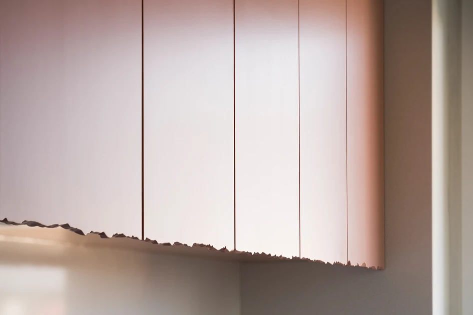 Studio No Architects incorporated two striking paintings into this design, and at the same time this design was incorporated into the two paintings. Number sixty-nine, represented in a painting by Vladimír Houdek, has a special meaning for the owners of this space. This inspiration is evident in the furniture and specially designed heating covers. The unusually rough edges of the paintings are reflected in the kitchen cupboard doors. The paintings’ colors match the colors of the interior - from obvious connections to the discrete ones, such as the color of the wall coating behind the bookshelves.