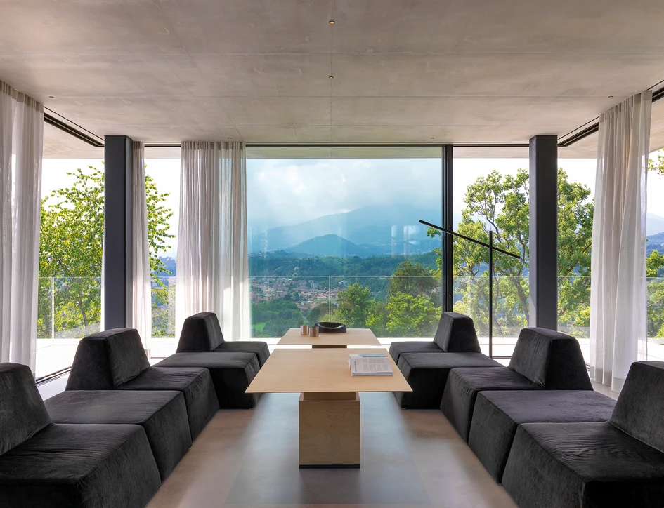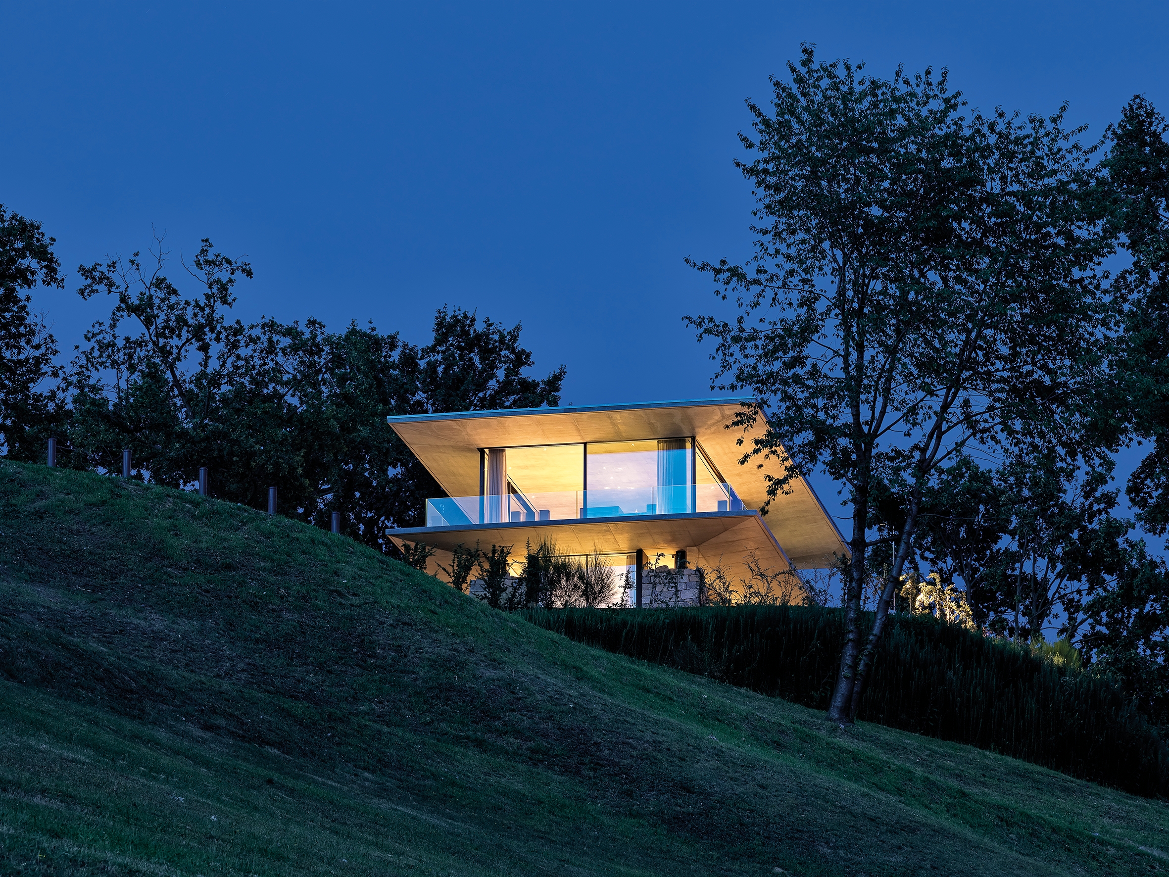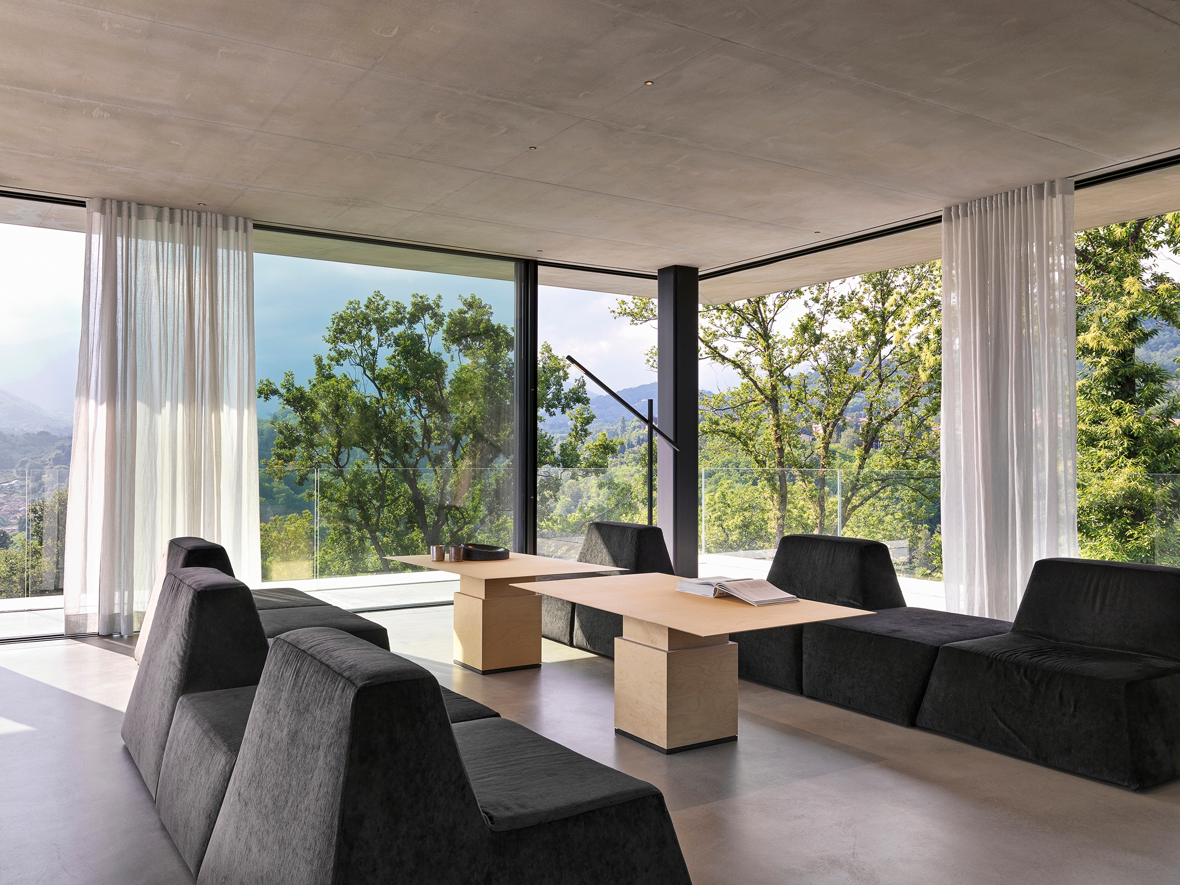 Conceived with a minimal-naturalist approach, Teca House is a contemporary building born from a professional friendship between Federico Delrosso, Milanese architect and designer of Biellese origins, and the client, Alberto Savio, textile entrepreneur of the area.