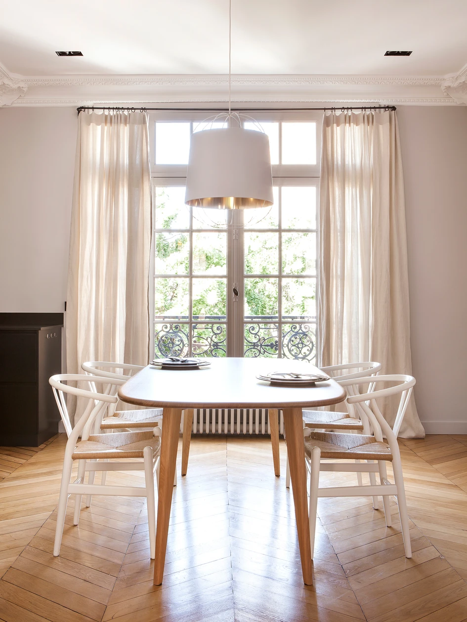 Situated in the heart of Paris, in the district of ‘Invalides’, this traditional Haussmannian family home was remodelled and designed by Camille Hermand Architectures to accommodate a young family. On the 4th floor of a typical Parisian apartment block, it boasts a large double siting room looking onto the street, a spacious bespoke kitchen looking over a leafy courtyard, and three bedrooms and an office discreetly situated to the rear of the property.