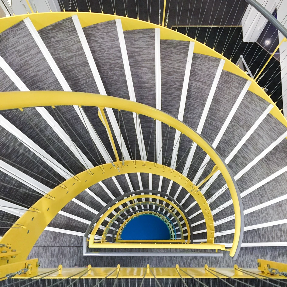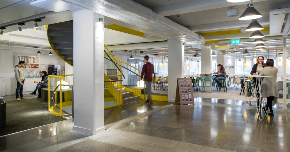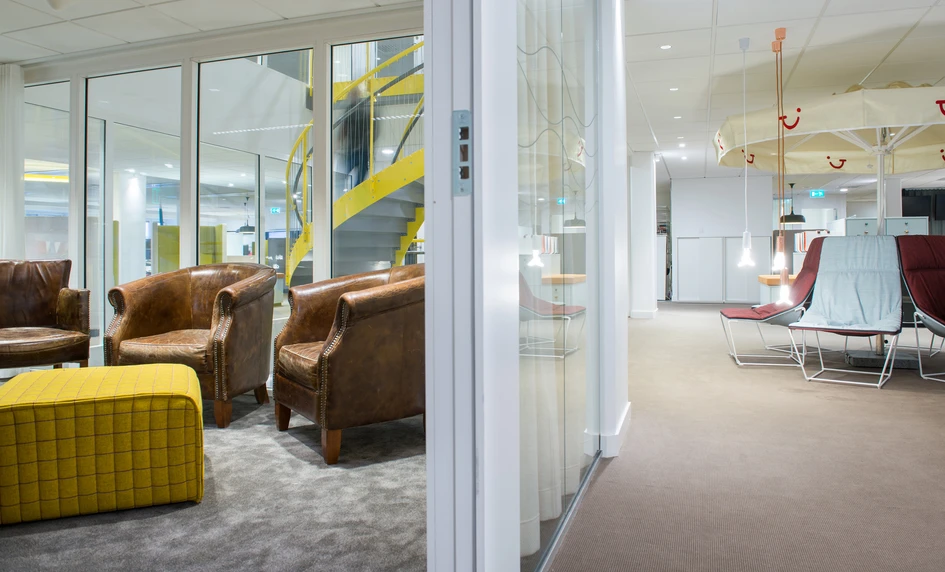The renovated and modernized premises now include the Piazza, for working, meetings, eating; a larger gym, lots of smaller meeting rooms and many points for spontaneous meetings. The roughly 5000 m2 of office space surprises its visitors by its calm yet energetic atmosphere, its quietness despite the open plan and the harmonious choice of coulours and lighting. Smile!