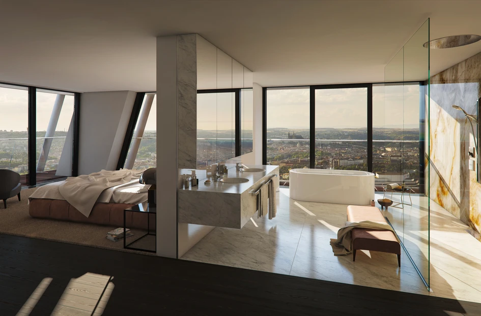 Bodentiefe Fenster in jeder Wohnung eröffnen den Bewohnern einen beeindruckenden Ausblick auf das historische Zentrum Prags und das Grün der benachbarten Parkanlagen – natürlich auch von den Badezimmern aus. Bei der Ausstattung der Bäder haben die Macher des V Towers auf KALDEWEI gesetzt: Insgesamt 115 Wannen des Ahlener Premiumherstellers laden zum Baden und Entspannen ein.
