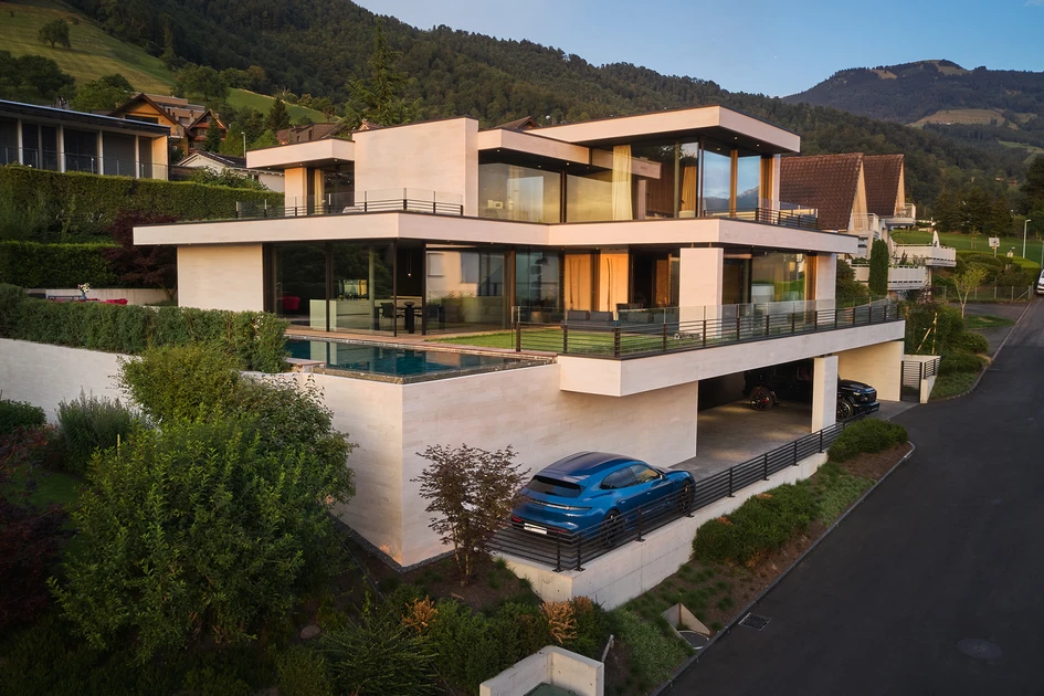 Die Luxusvilla ist ein Meisterwerk des modernen Designs, das sich harmonisch in die umgebende Landschaft einfügt. Ein Ort, an dem Wohnen zu einem einzigartigen Erlebnis wird und der Ausblick eine ständige Quelle der Inspiration ist.