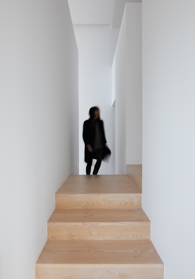 The concrete is not painted or surface-pigmented but solid white, which gives it a wonderful glow. The joints between the concrete elements are carefully designed and positioned so that – instead of interfering with – they become part of the building's geometry and expression. The sealant in between is gray to enhance the graphic effect rather than matching the concrete surface.