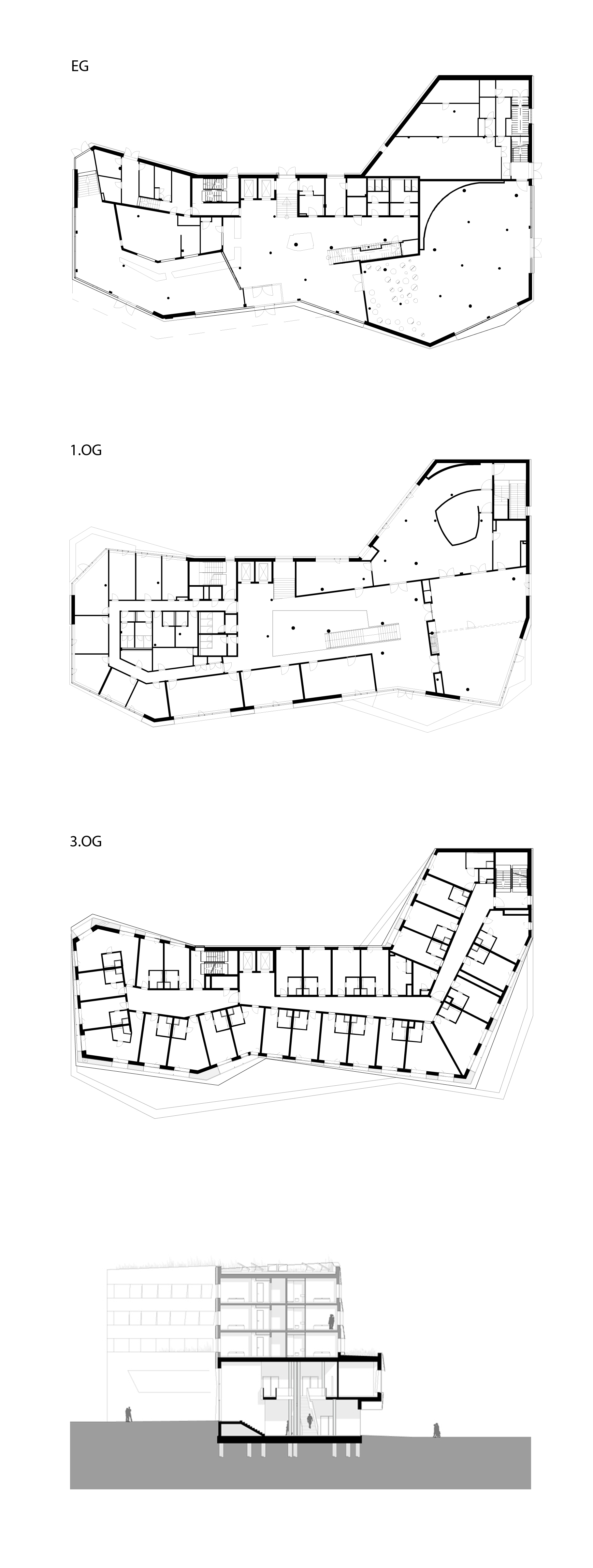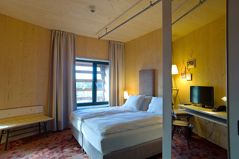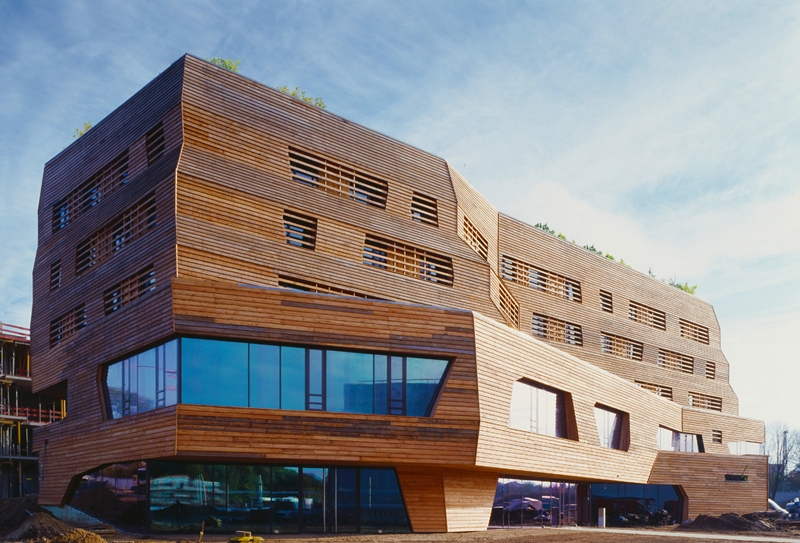 Aufgrund der unterschiedlichen Nutzung der einzelnen Geschosse und den damit verbundenen baurechtlichen Anforderungen unterscheiden sich auch die Konstruktionsweisen der einzelnen Geschosse. Die ersten beiden Etagen wurden in Stahlbetonbauweise, die oberen drei Etagen in Massivholzbauweise aus dem Holz der Fichte errichtet. Das zertifizierte Fichtenholz stammt zu 80 % aus Deutschland und Österreich, zu 20 % aus Finnland.