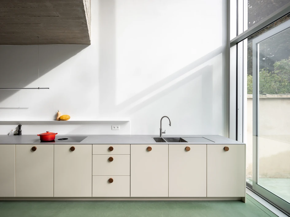 With a preference for color and natural materials, the interventions were carefully selected. At the project's outset, several finishes and craftsmen were already secured, forming the foundation upon which the project would later be built. Extensive self-construction work allowed us to invest in the technical and energetic aspects of the house as well as its aesthetic appeal, creating a sustainable home.