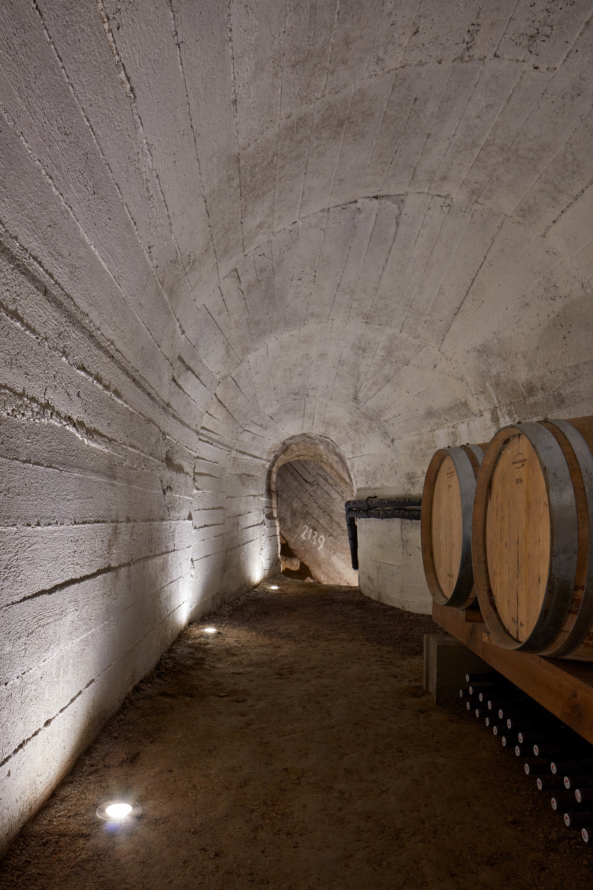 The cellars are entered through a secret door in the facade of the extension. In order for the underground to retain its authenticity, we left it almost without interference. The cellars in the first level are stuffed with stainless steel tanks; this being is the main production area of the winery. Barrels are located on the second floor of the cellars, and the Znojmo historical underground is directly connected to this part.