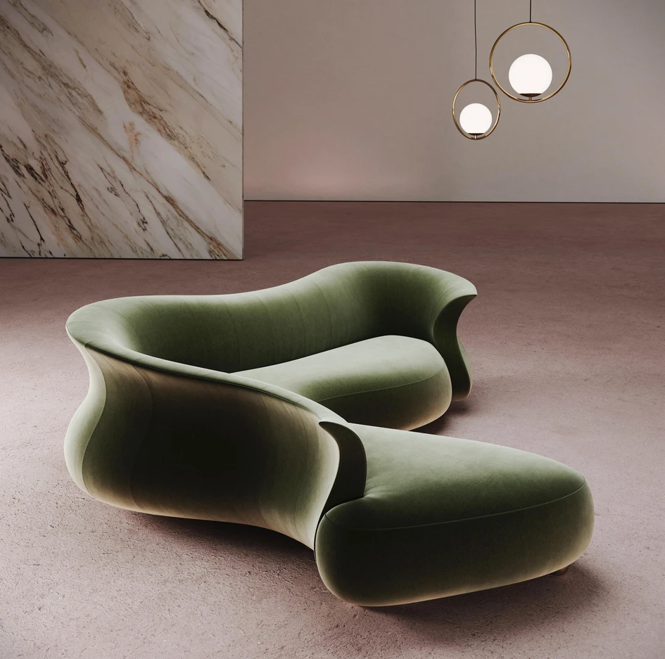Die Amphora-Sitzmöbelkollektion von Desforma ist ein Möbel als Landschaft, während die Kurven des Nana Loveseat und der Couch von Freifrau ultimative visuelle und ergonomische Weichheit vermitteln