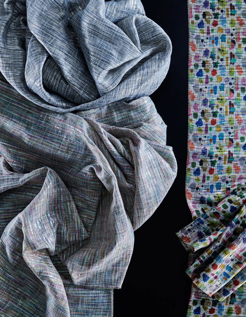 Jeder Entwurf setzt neue Massstäbe: Die Kombination von feinstem Handwerk und industrieller Fertigung macht Stoffe wie Trama (oben), Filo Punto und Filo (Mitte) und Sophie (unten) erst möglich
