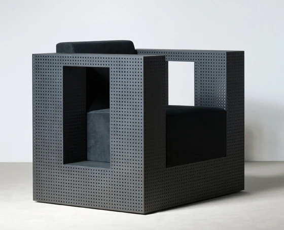 Geradlinig und kantig zeigen sich die Modelle GB 21–32. Gefertigt werden sie aus 2,5 Millimeter dickem Lochblech, das von Hand geschweisst und geschliffen wird