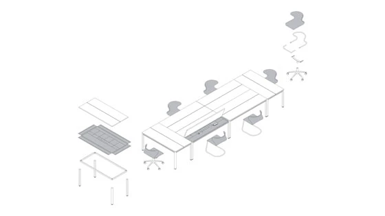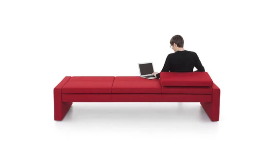 Alain Berteau und seine Kollegen haben auf Basis des erfolgreichen TAB-Stuhls ein umfassendes System entwickelt in dem jedes Sitzelement in eine flexible Sitzkonfiguration eingepasst werden kann, wie z.B. Sitzreihen oder Wohnlandschaften
