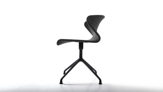 Die schaumlosen Softstühle FABRIC von Objekten Systems sind aus einem innovativen, recyclebaren, 3D-gestrickten Polyestergewebe, das auf einen Stahlrahmen gespannt wird