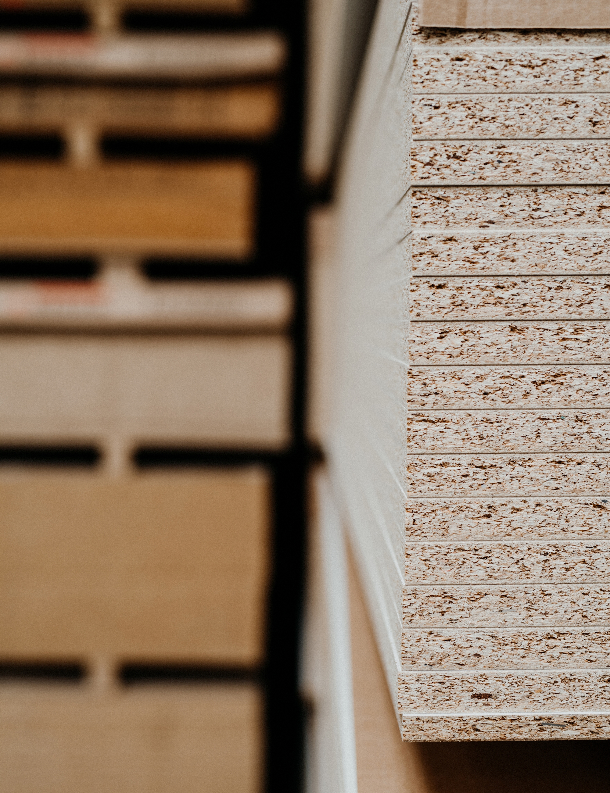 Nachhaltigkeit nicht nur im Hinblick auf das Geschäft, sondern auch auf die Umwelt: Palmberg verarbeitet Restpartikel aus dem Sägeprozess zu neuen Platten. Zu sehen: Steffen Bauer, Akustische Komponentenfertigung