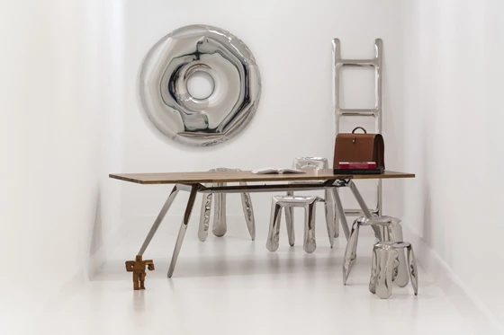 Zięta wurde 1976 in Łódź geboren, studierte Architektur in Stettin und ging dann in der Abteilung für Computer Aided Architectural Design an der ETH Zürich in die Forschung. Die Arbeit am Institut war kollaborativ und prozessorientiert, was grossen Einfluss auf ihn hatte. Denn bald entwickelte er eine völlig neue Methode, um Objekte aus Stahl zu formen, die er “free inner pressure forming” (“freies Formen durch Innendruck”) nannte. ‘Plopp’, Ziętas erster Hocker aus dem Jahr 2007, zeigt eindrucksvoll, was mit dieser Technik möglich ist.