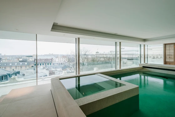 Das offene Designkonzept glänzt mit stilvoll eingerichteten Wohnbereichen. Geselliges Beisammensein garantiert der sehr geräumige Livingbereich mit Bar und Billardtisch. Um dem Alltagsstress zu entfliehen, lässt es sich am besten im großzügigen Innenpool inklusive Whirlpool entspannen. Das Schlafzimmer überzeugt mit einem atemberaubenden Ausblick und lässt zugleich die Privatsphäre dank langer Vorhänge und Sonnenschutz nicht außen vor. Helle Farben und eine elegante Innenausstattung prägen die Atmosphäre und Harmonie des luxuriösen Lofts im Herzen der Stadt.