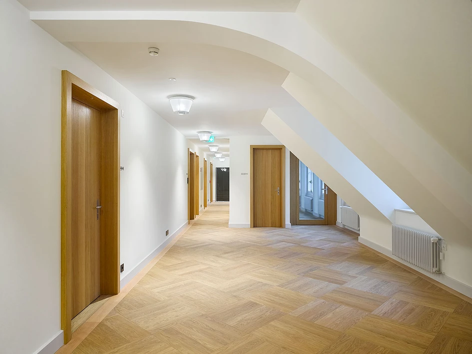 Im Rahmen der Sanierung der Schweizerischen Nationalbank durch Aebi & Vincent Architekten und den Lichtplanern vogtpartner entstanden massgeschneiderte Leuchten für Korridore und Konferenzräume, darunter der legendäre Salon bleu