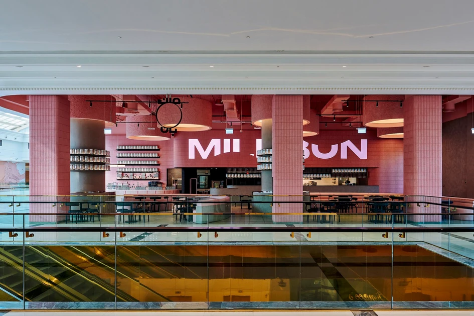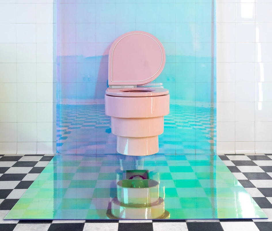 A large part of Barbiecore is to embrace the fake. And although I’m not suggesting we build our own life-size Barbie Dreamhouses with pink plastic, there are more sustainable materials, like the glossy pink Marrakesh tiles from RAK Ceramics, for example, that offer a glamorous sparkle and shine. Again, targeted towards younger generations, the MILK BUN fast-casual restaurant in a Lusail shopping mall in Qatar fills many of its surfaces with pink tiles, including the pink-hued iridescence of those under the dessert counter.