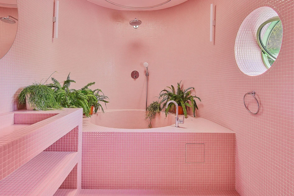 It wasn’t long ago, of course, that we decided to nail shut the lid on the mid-century pink bathroom suite, so it’s a surprise to see it make its return so soon. With the rise of pink as a suitable and serious decor colour, however, the pastel-pink bathroom makes perfect sense. This is the belief, at least, of the owners of Hope House in La Floresta, Spain. Their monotone flamingo-pink bathroom features pink tiles from floor to-and-including ceiling, including the bathtub and basin fixtures, too. The only respite comes in the form of resident plantlife, itself given extra verdure by its contrast to the surrounding surfaces. With a pink version of the Callipyge WC, meanwhile, manufacturer Trone forgets the shade’s past bathroom transgressions and looks only to the future, with an ultra-contemporary, some may say futuristic, even, form.