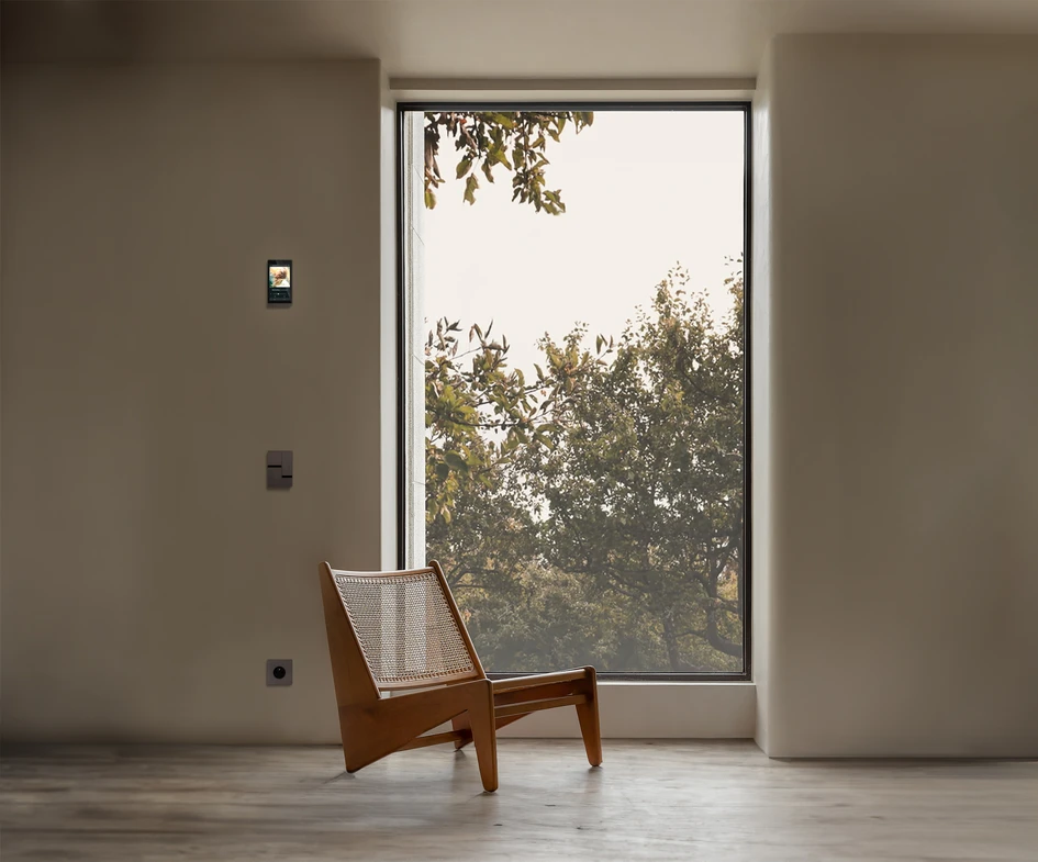 Das erste Design von Basalte, Sentido, ist nach wie vor ein Held. Ein grafischer Vier-Wege-Schalter, der Licht, Klima, Sound und Sicherheit steuern kann und in einer Vielzahl von Materialien und Oberflächen erhältlich ist, die zu Ihrem Interieur passen