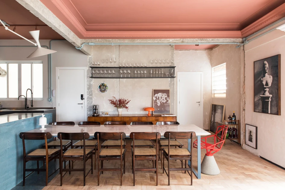 Am Esstisch von RF Apartment (oben) sind die Lucio-Stühle von LinBrasil und der druckgegossene One-Stuhl von Magis (unten) eine unerwartete Paarung. Foto: Maíra Acayaba (oben)