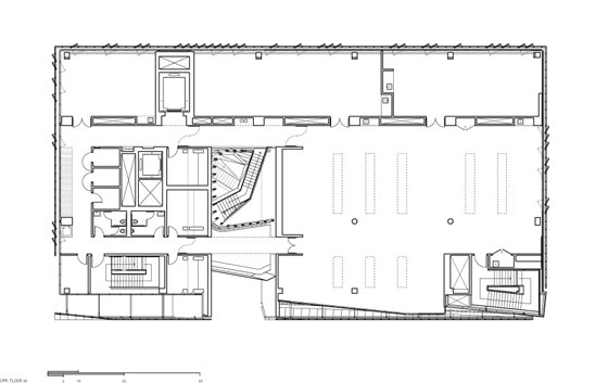 In the spirit of the institution’s dedication to free, open and accessible education, the building itself is symbolically open to the city. Visual transparencies and accessible public spaces connect the institution to the physical, social and cultural fabric of its urban context. At street level, the transparent facade invites the neighborhood to observe and to take part in the intensity of activity contained within. Many of the public functions - an exhibition gallery, board room and a two-hundred-seat auditorium - are easily accessible one level below grade.
