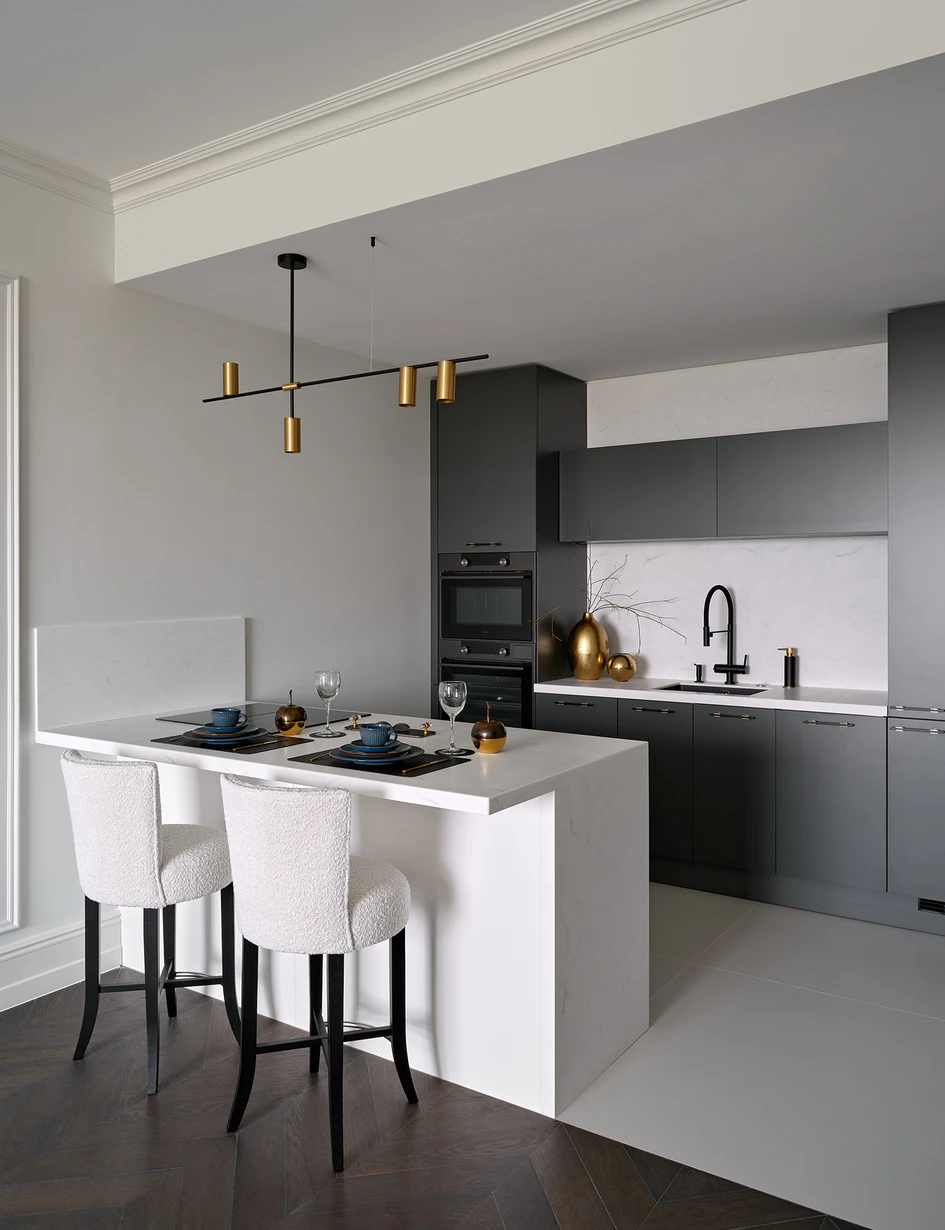 This contemporary apartment designed by interior designer Tatiana Frolova reflects the personality of its young owner through a careful balance of elegance, practicality, and adaptability. The concept was born from the client's desire for a non-traditional space, rich in character and full of thoughtful design solutions.