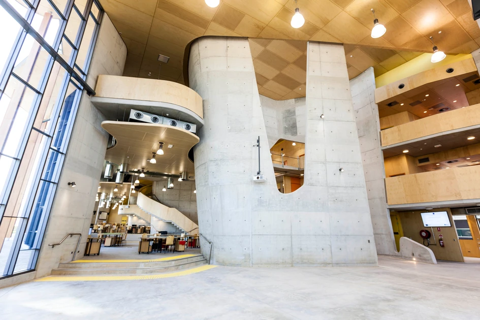 The Abedian School of Architecture is located on the campus designed in the 1980s by Arata Isozaki. It forms part of the Faculty of Architecture and Sustainable Design. Winning the competition in January 2011, CRAB was awarded the contract and the building was completed in 2013.