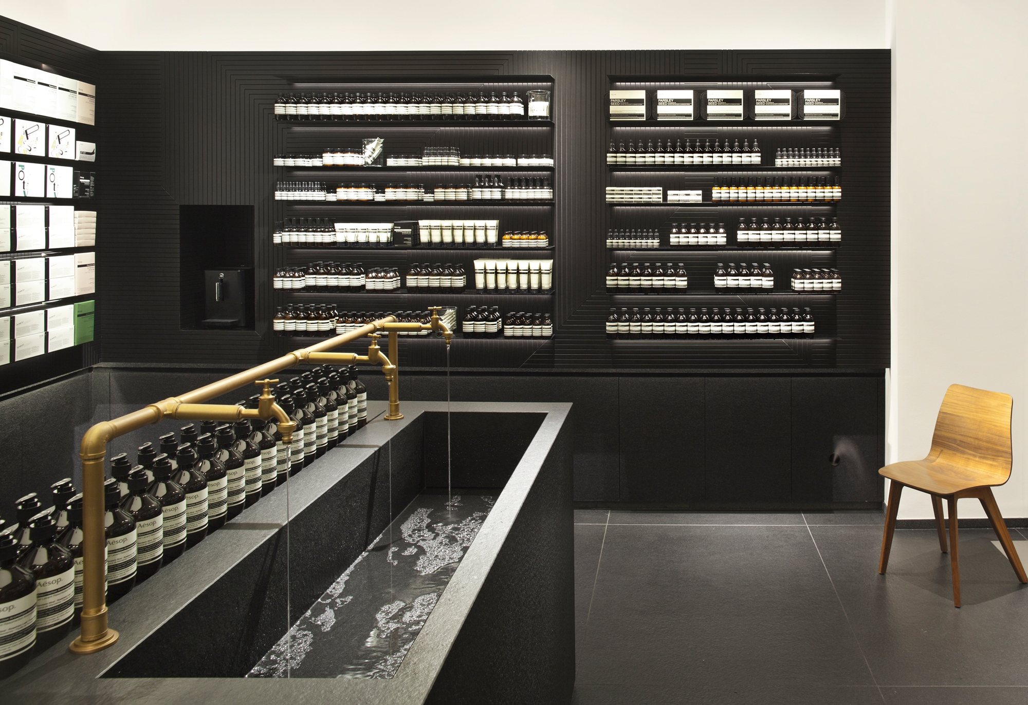 Wrapping the walls, a ribbon of milled black MDF panelling articulated with linear incisions references Soulages’ work as an engraver and sculptor, and stirs memory of his oeuvre-defining Outrenoir series. Customers can explore and select from a complete range of skin, hair and body care products, distinguished by botanical and laboratory-generated ingredients of the highest quality. The store’s trained consultants are able to offer advice about those best suited to individual needs. Aesop was founded in Melbourne in 1987 and today offers its superlative formulations in signature stores and counters around the world, and online. As the company evolves – new stores open soon in London, Sydney and Taiwan – meticulously considered design remains paramount to the creation of each space.