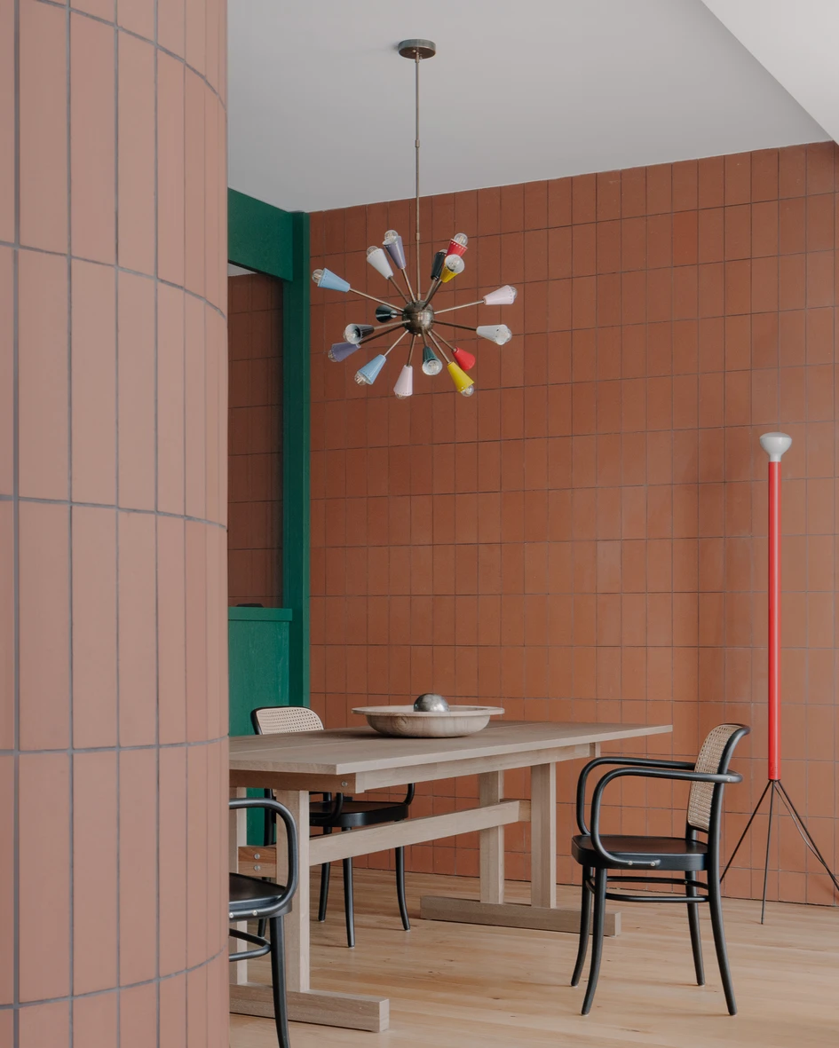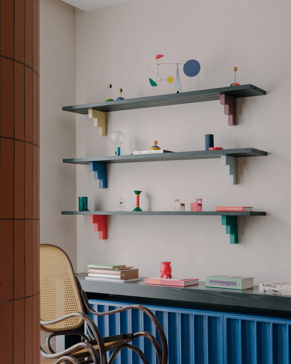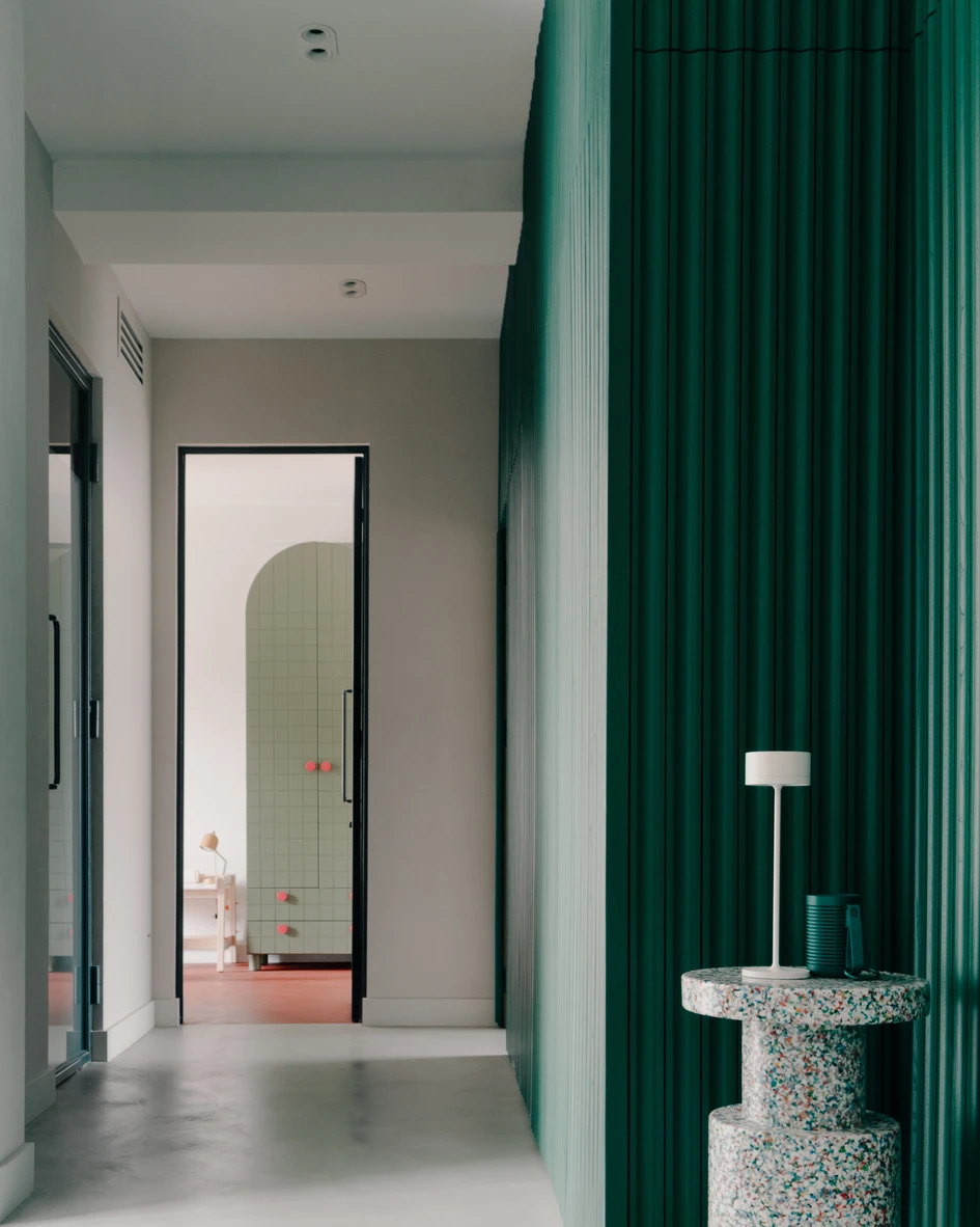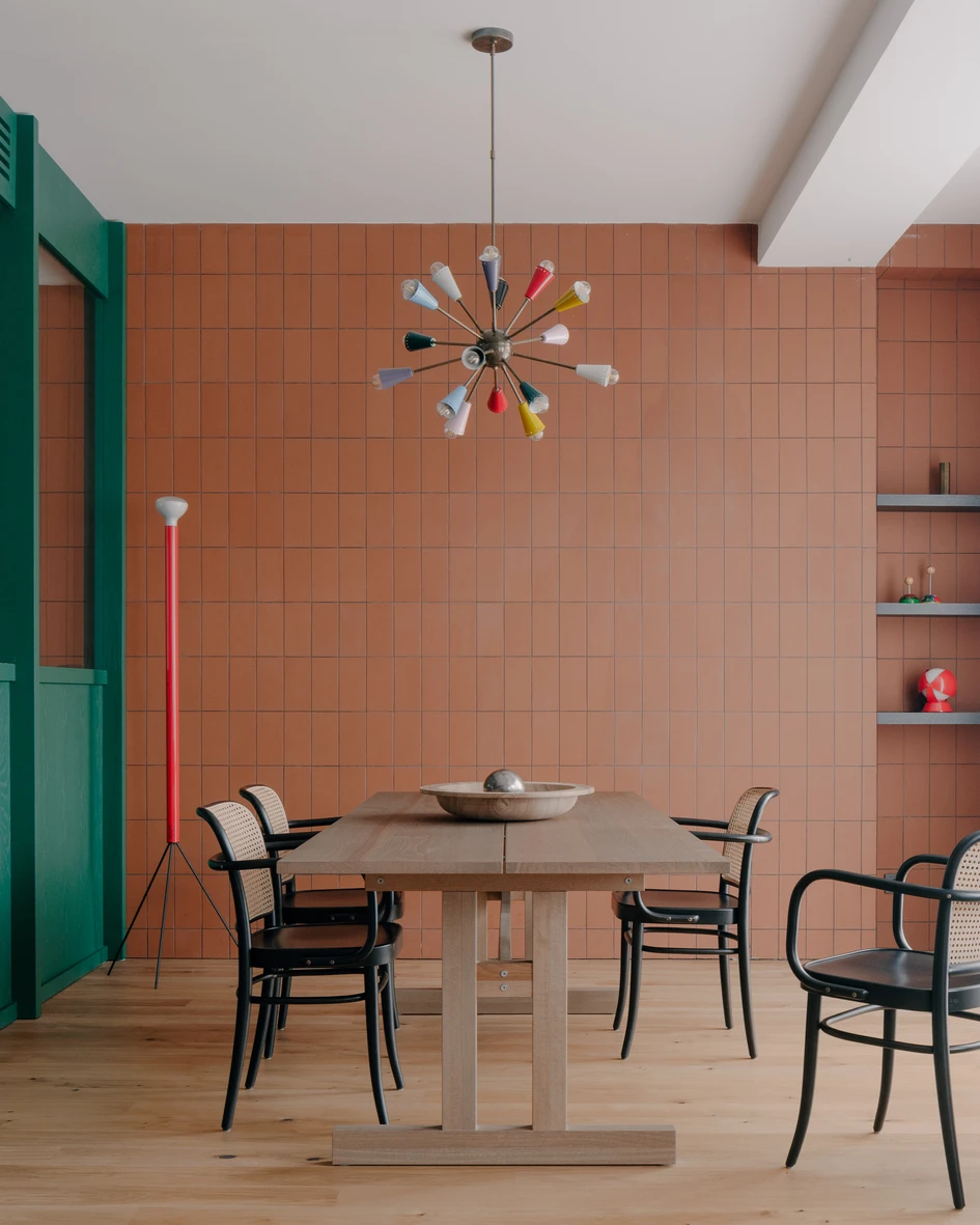 Overall, the apartment reflects a carefully crafted balance of natural materials, striking accents, and unique design pieces. The result is a space that feels personalized and authentic, with each area having its own distinct character while maintaining a cohesive and inviting environment throughout. The combination of these elements ensures the apartment is not only aesthetically pleasing but also functional and adaptable to changing needs.