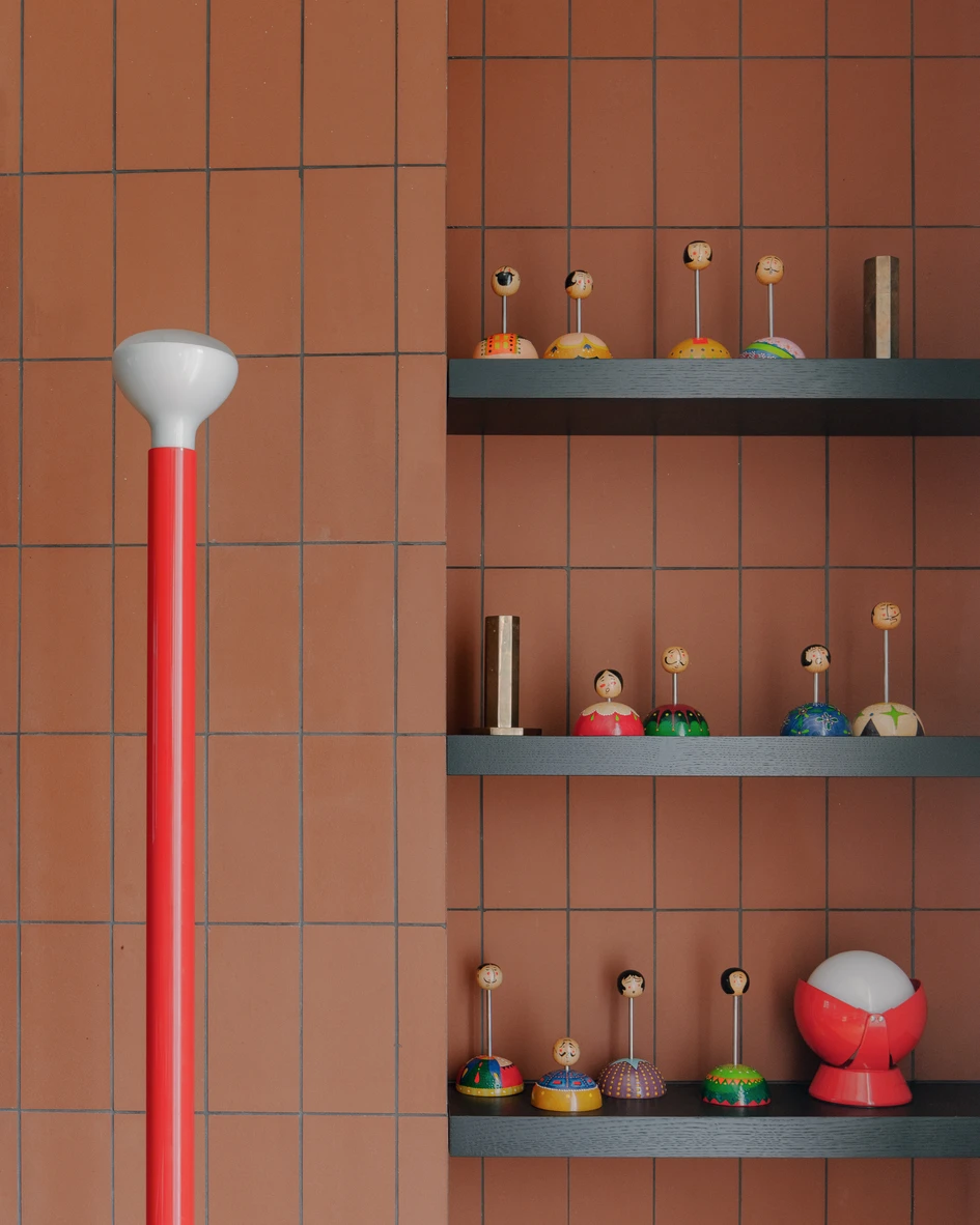 Natural materials such as wood, stone, and clay tiles are central to the design, contributing warmth and texture. The predominant straw color serves as a neutral backdrop, creating a calm atmosphere that’s complemented by bold accents of green, blue, and red. These vibrant hues are used thoughtfully in the furnishings and decor, adding a lively touch while maintaining a harmonious overall look.