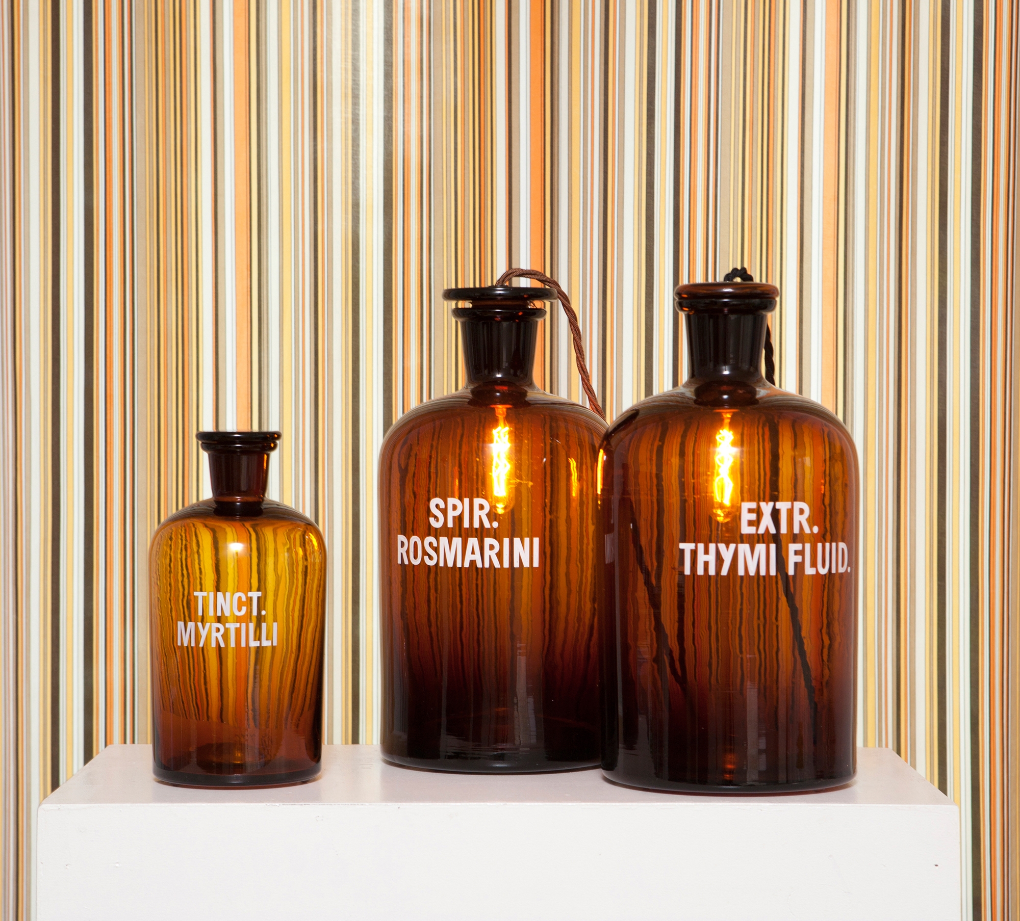 Responds to mass consumption and mass production. Antique apothecary objects, reconstructed to become a new and unique interior object.