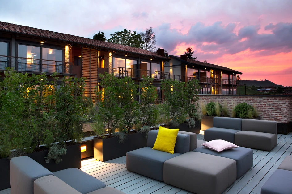 Arborina Relais is in a land embroidered with vineyards, castles and villages imbued with tradition. It is a small and precious boutique hotel in La Morra, perfectly integrated in the surrounding nature and landscape. This marvellous belvedere looking onto the Barolo hills has simple lines, large windows, soft lighting, and natural materials like wood and stones to offer a fine atmosphere, where every detail has been designed with care.