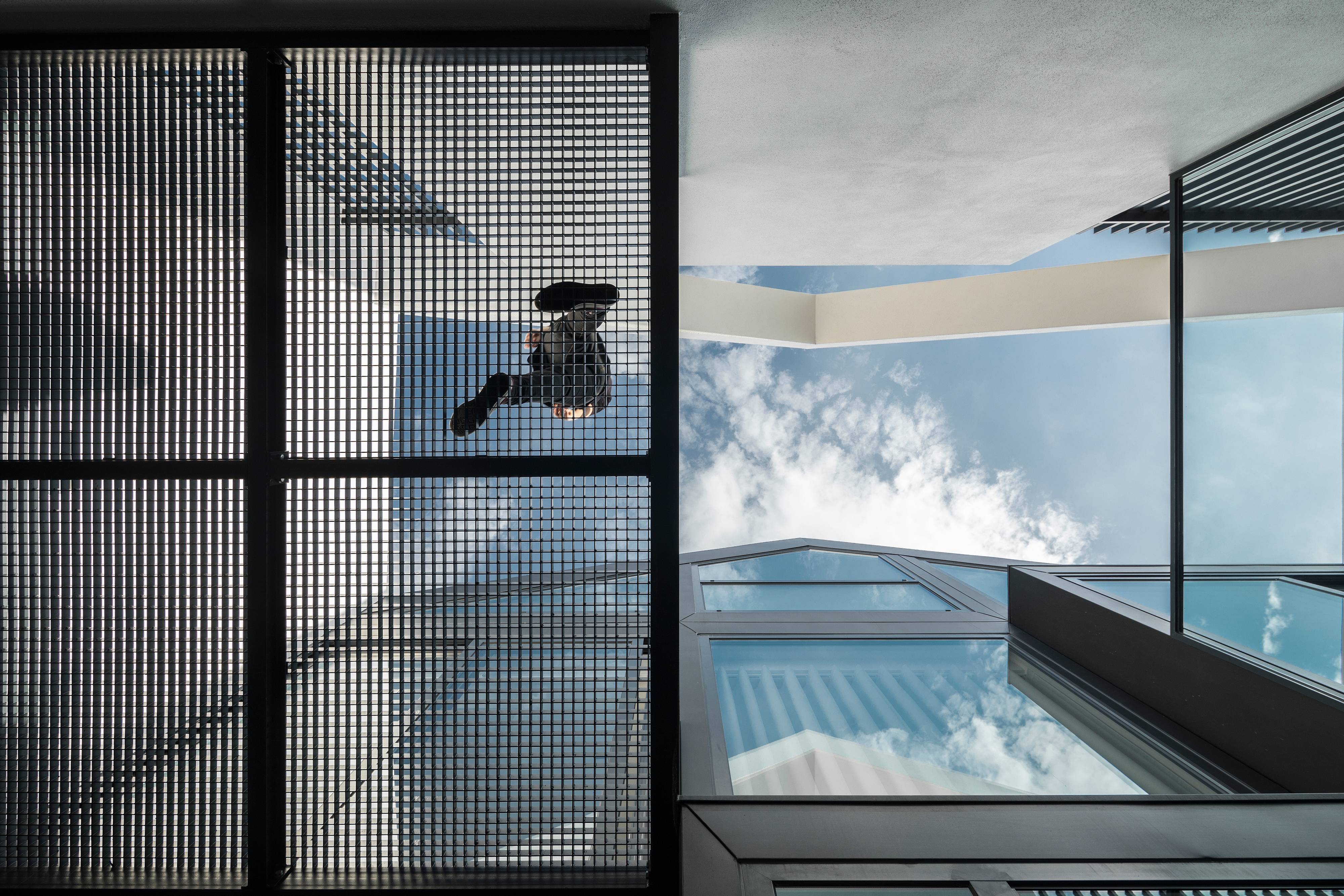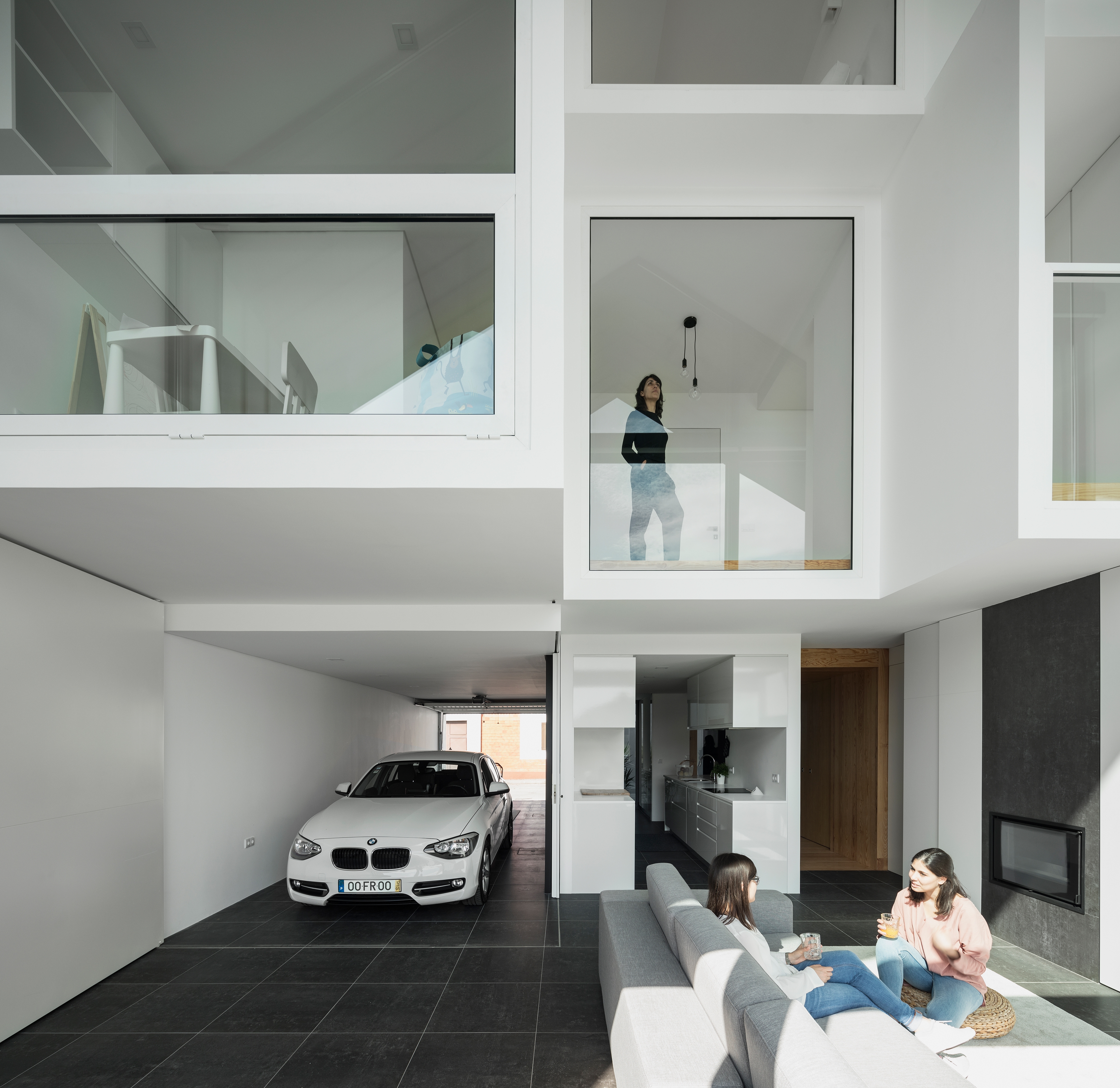 All the boxes inside get the chance to relate to this facade with the same hierarchy, as they all are turned into the same big window. Due to construction restrictions, the basement floor designed for the atelier wasn’t built. This decision forced a global redesign but it was ensured the minimum changes to the original project of the house. The Arch House is, therefore, the combination of these three assumptions: the theatricality of the urban facade, the complexity of the pretended use versus the industrial inspiration and the limitations of the plot, that, together, makes this house a complex and unique piece of architecture!