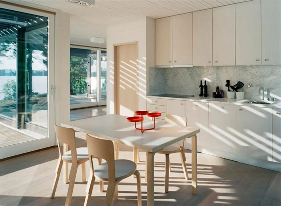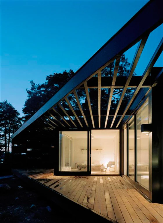 The archipelago house was conceived as a light-weight construction in wood and glass. Located in Stockholm’s outer archipelago, this summer house was built within the specific conditions prevailing on the island. Without any car-connections, all materials had to be brought by boat from the mainland. Wood was chosen throughout the design in order to provide simplicity of construction and to minimize difficulties with heavy transportation.