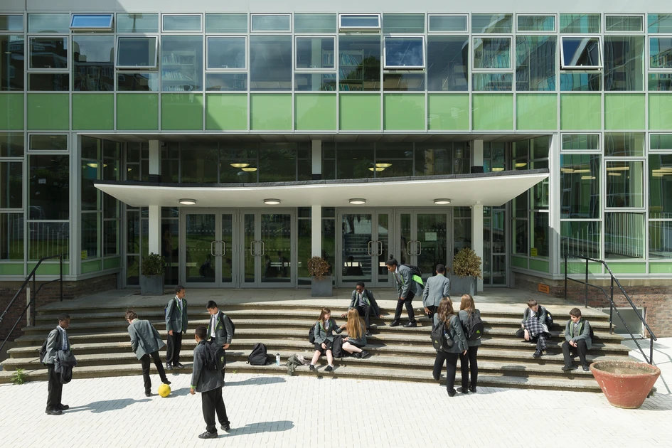 The internal layout has been transformed to accommodate 1,050 pupils and now includes a ground floor dining area, and a new art department which is relocated to the distinctive rooftop ‘waveform’ pavilion with large areas of glazing that provide attractive views of London.
