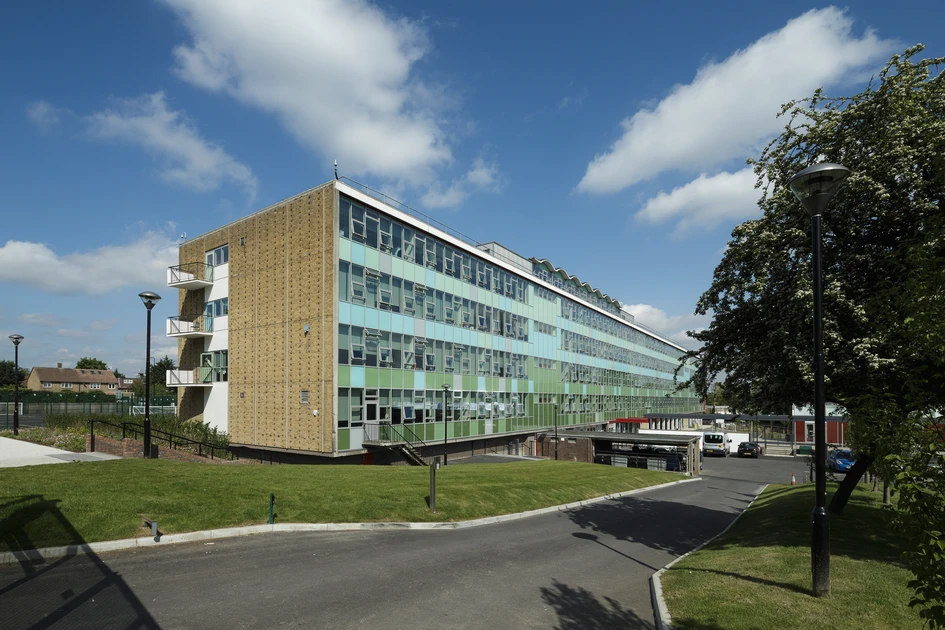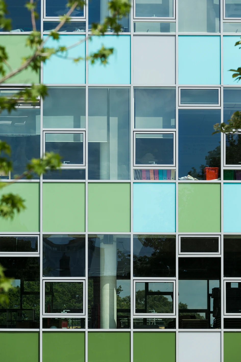 Hawkins\Brown designed a new environmentally responsive façade, updating the colour palette with a pattern generated using shades from the original colour panels, and from original features of the building.