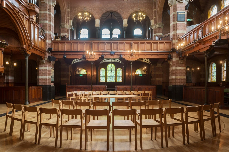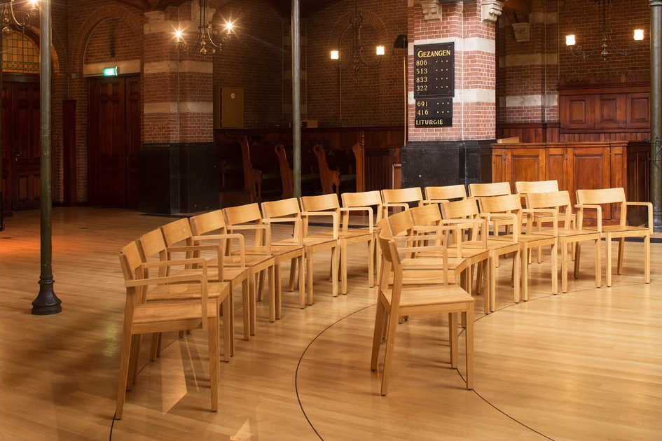 The Arminiuskerk is a key meeting point in Rotterdam. Questions relating to politics, the law and science are regularly discussed at this centre and the Renaissance church is a dedicated space for cultural exchange. Built in 1897, the church’s focal point is its richly decorated and very impressive pipe organ. The natural oak seating lends the austere brick building a warm and welcoming character. The stackable SIT chairs are arranged in rows around the TWIST table.