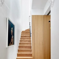 It is a unique collaboration of Artist and Architect, with the artist approaching the concept with the level of time and thought that would normally be spent on creating artwork, and the Architects and Interior designers adding tt he vision and making it real. Features include: Kitchen joinery wrapped around laundry, which is a reuse of the understair area